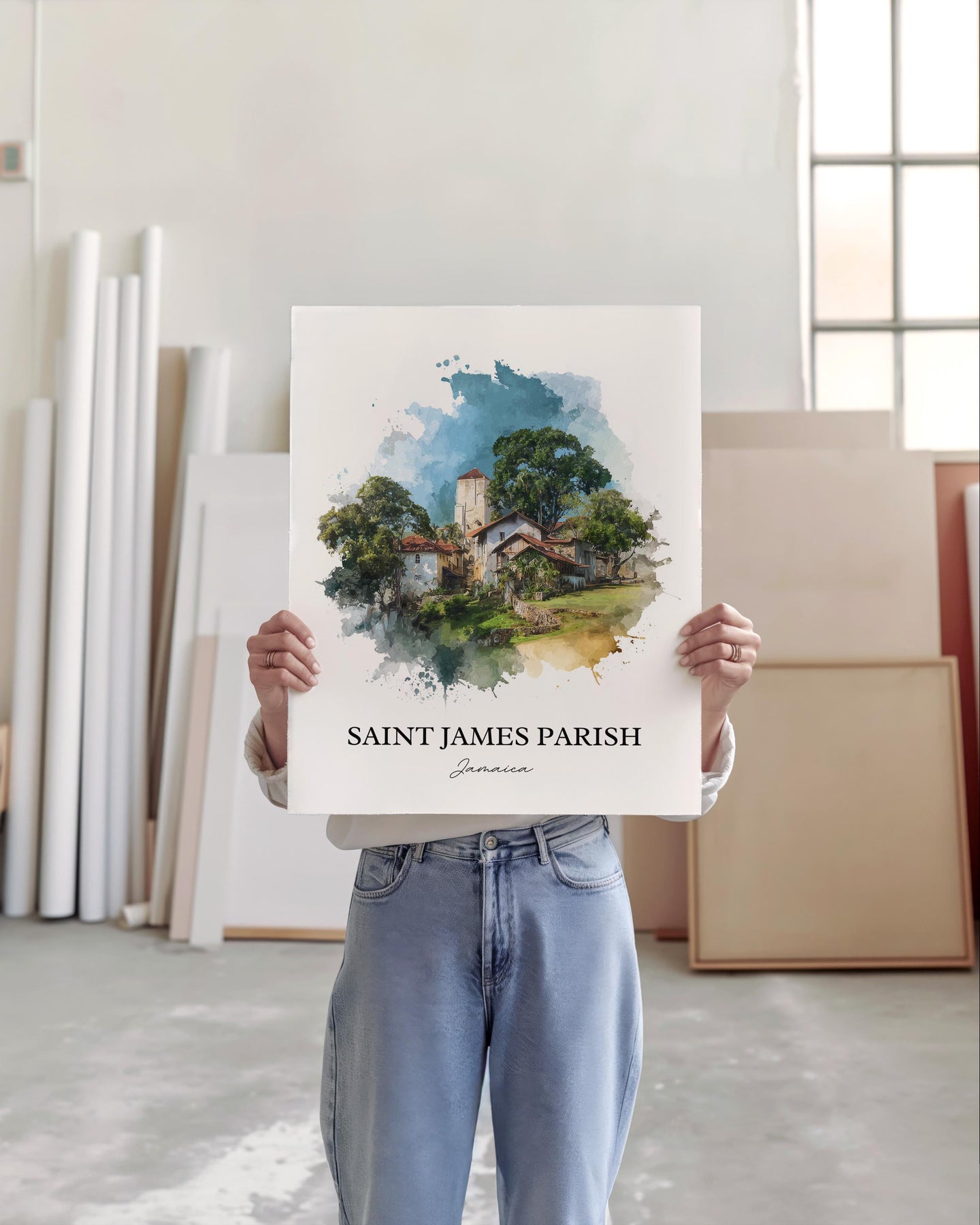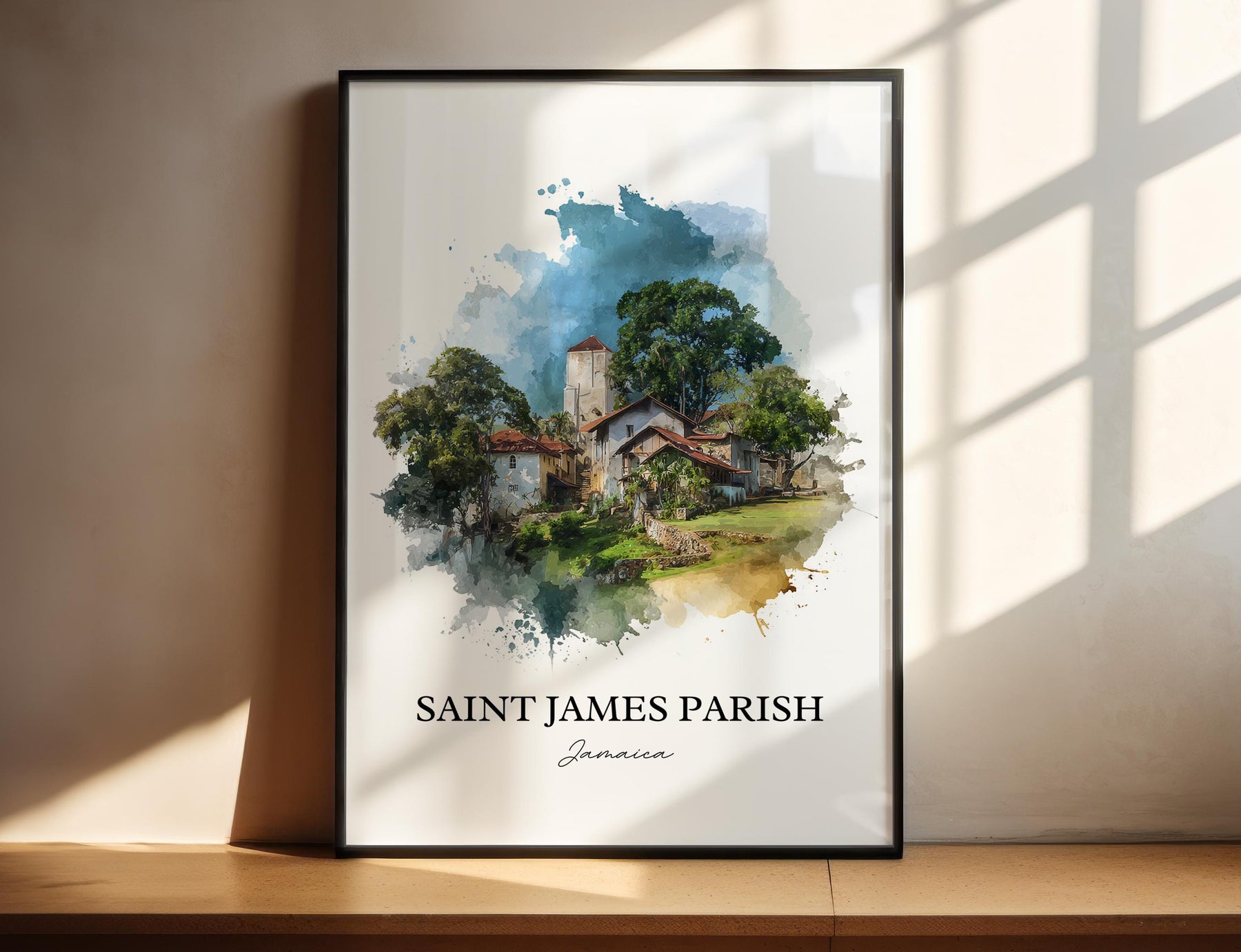 Saint James Parish Wall Art, Jamaica Print, Jamaica Watercolor Art, St. James Parish Gift, Travel Print, Travel Poster, Housewarming Gift