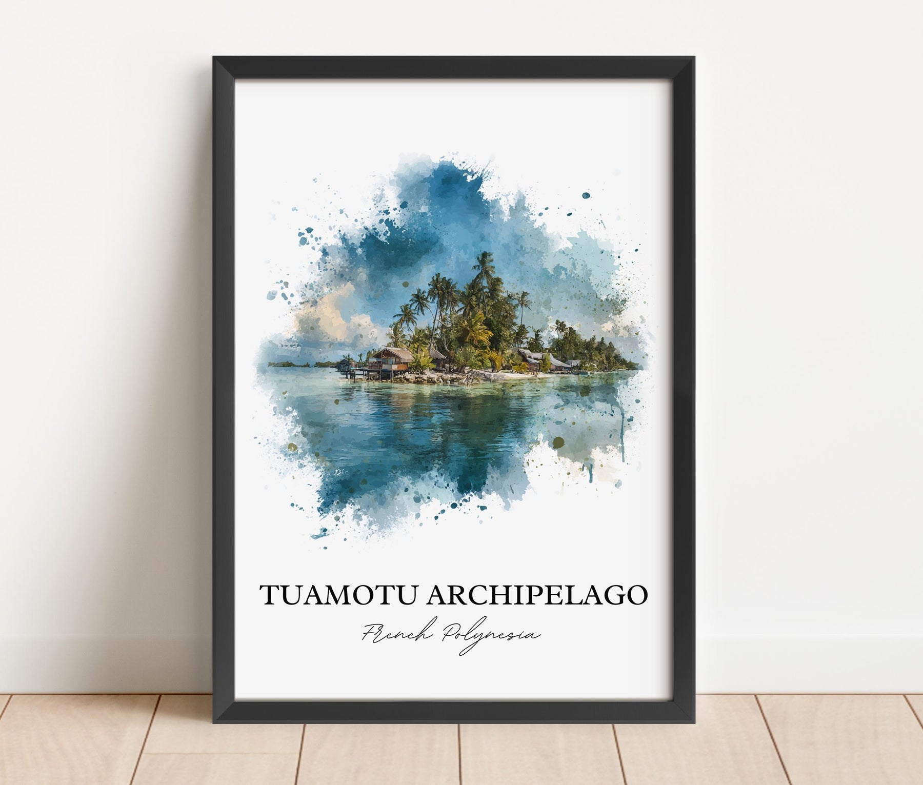 Tuamotu Archipelago Wall Art, Tuamotu Print, Polynesia Watercolor Art, French Polynesia Gift, Travel Print, Travel Poster, Housewarming Gift