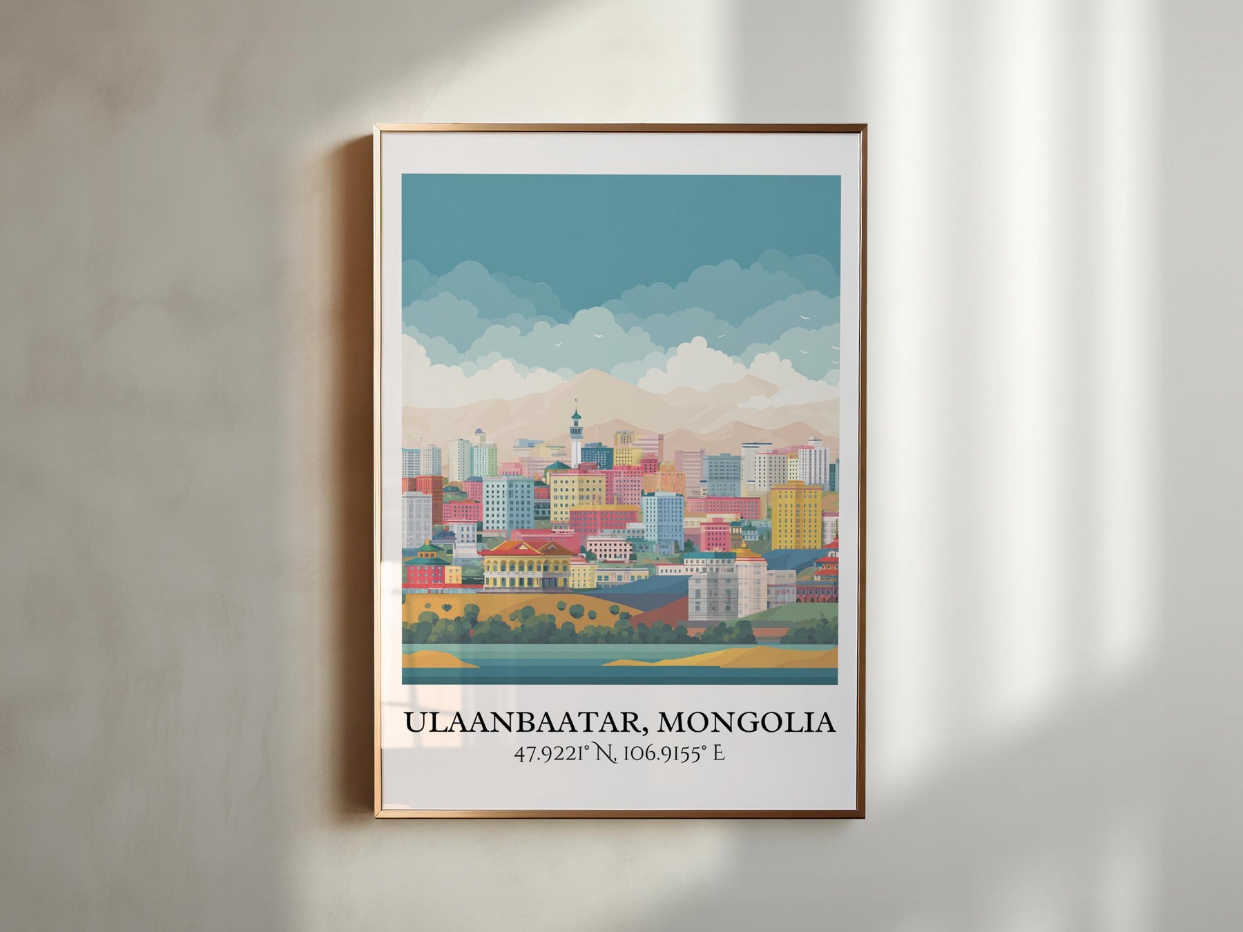 Ulaanbaatar Art, Ulaanbaatar Retro Travel Art, Mongolia Home Decor, Mongolia Gift, Mongolia Travel Art, Travel Prints, Housewarming Gift