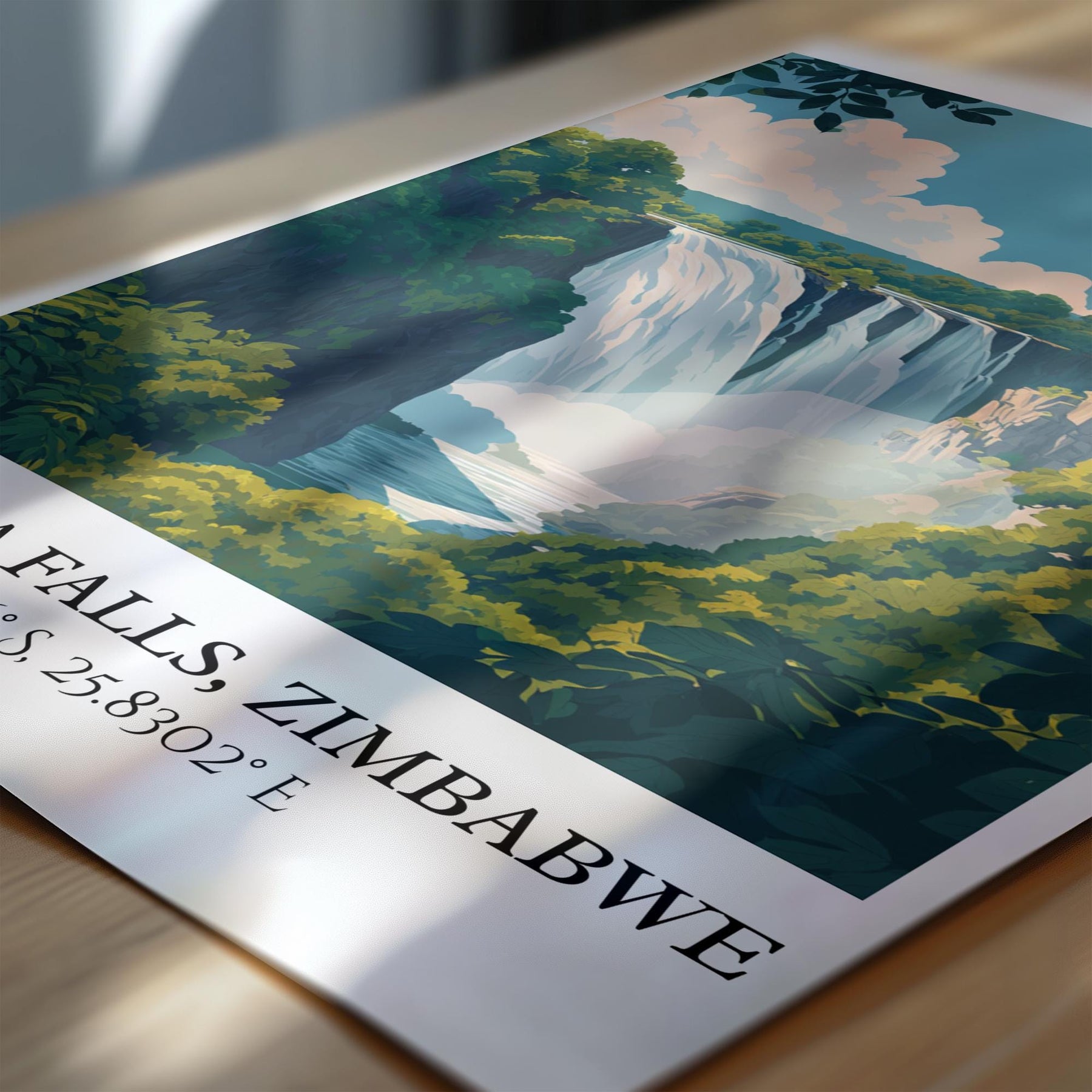 Victoria Falls Art, Zimbabwe Retro Travel Art, Zimbabwe Decor, Victoria Falls Gift, Victoria Falls Art, Travel Prints, Housewarming Gift