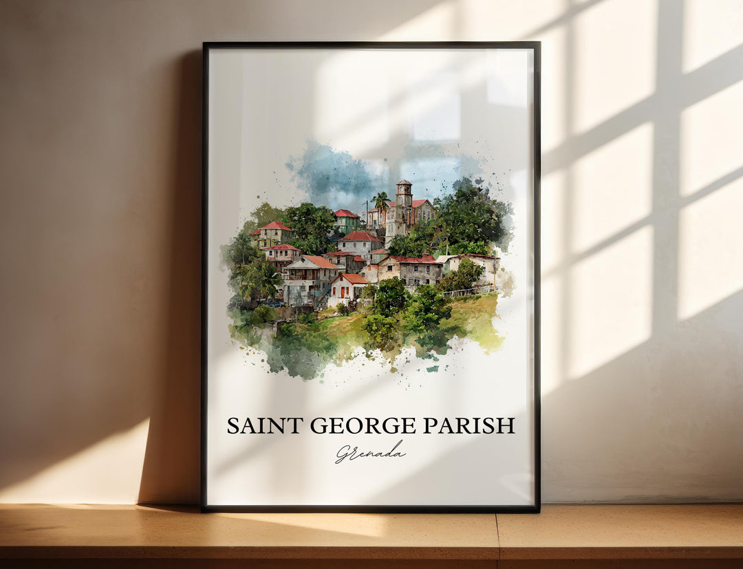 Saint George Parish Wall Art, Grenada Print, Grenada Watercolor Art, St. George Parish Gift, Grenada Decor, Travel Poster, Housewarming Gift