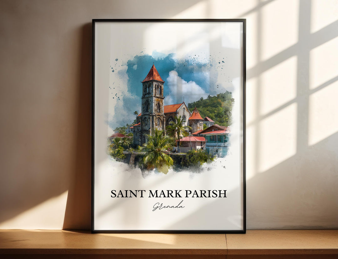 Saint Mark Parish Wall Art, Grenada Print, Grenada Watercolor Art, Grenada Gift, Grenada Travel Print, Travel Poster, Housewarming Gift