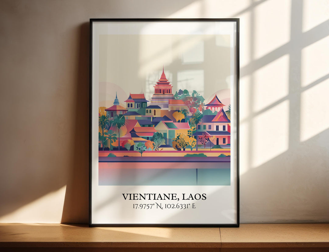 Vientiane Laos Art, Vientiane Retro Travel Art, Vientiane Home Decor, Vientiane Gift, Laos Travel Art, Travel Prints, Housewarming Gift