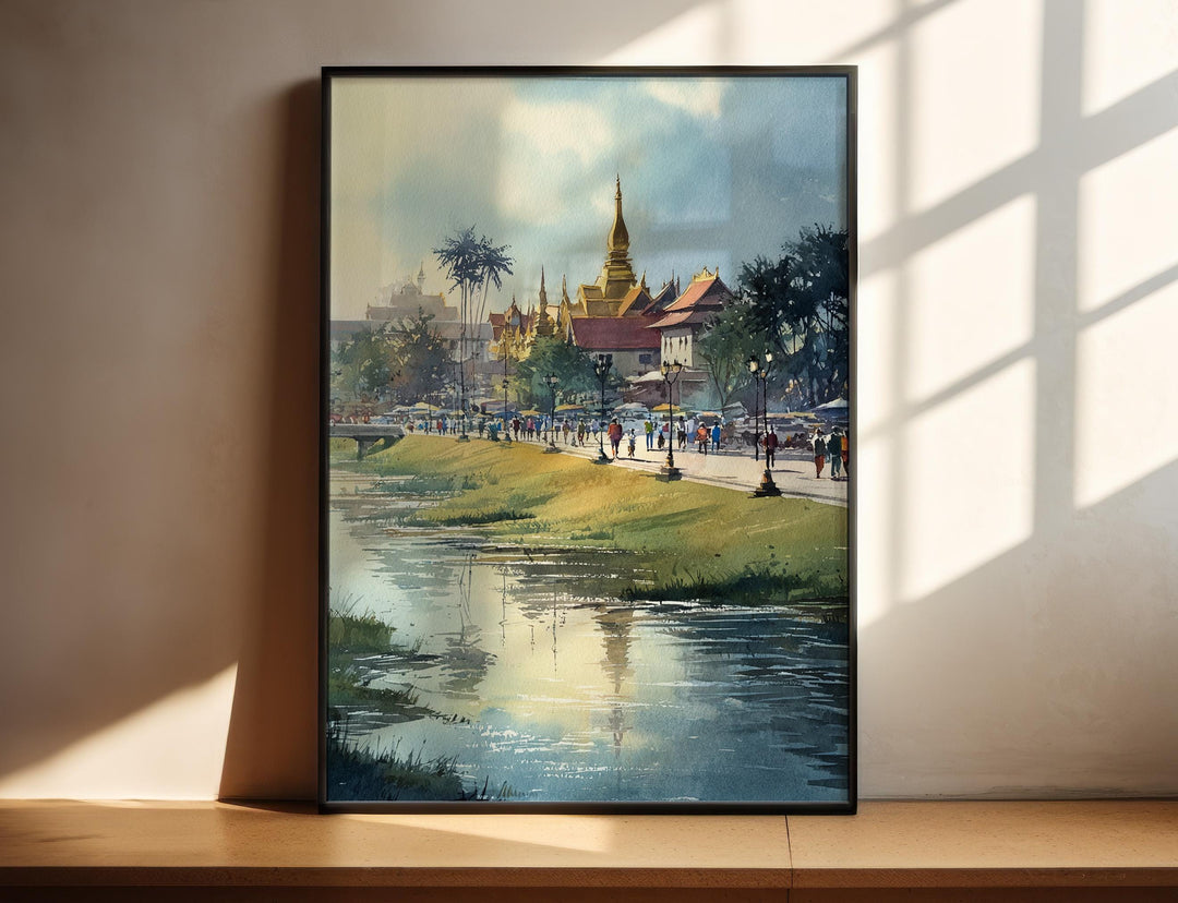 Vientiane Watercolor Art Vientiane Laos Travel Print Laos Artwork Vientiane Decor Vientiane Cityscape Wall Art