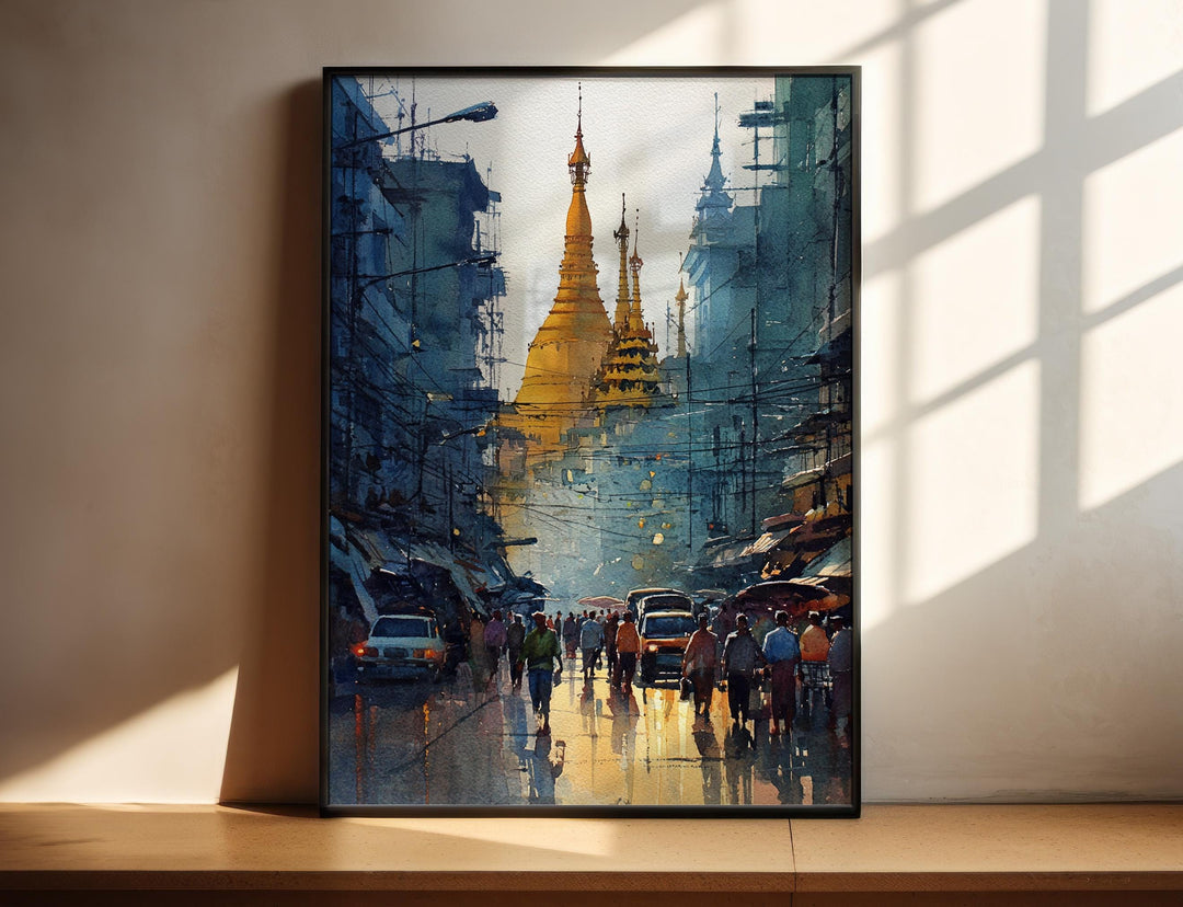 Yangon Myanmar Watercolor Art Yangon Travel Print Yangon Artwork Yangon City Decor Myanmar Wall Art