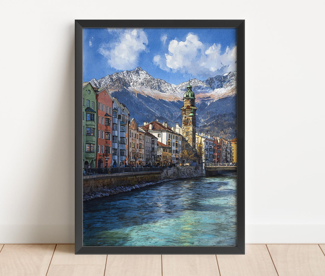 Innsbruck Watercolor Art Innsbruck Travel Print Innsbruck Austria Artwork Austria Decor Innsbruck Wall Art