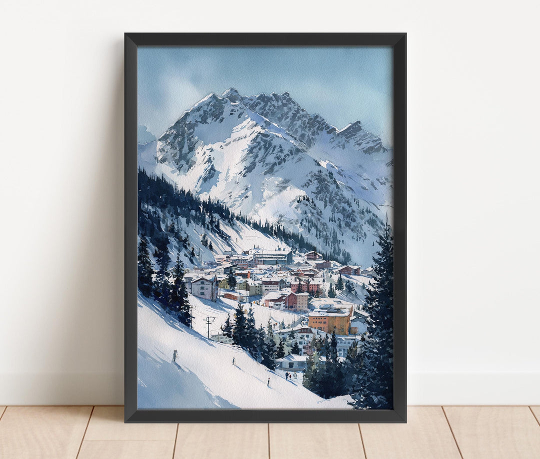 Lech Zürs Watercolor Art Lech Zürs Travel Print Austrian Artwork Austria Ski Decor Arlberg Wall Art