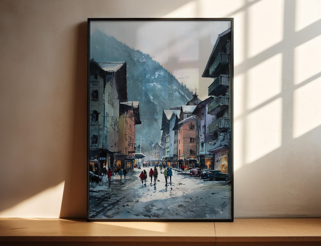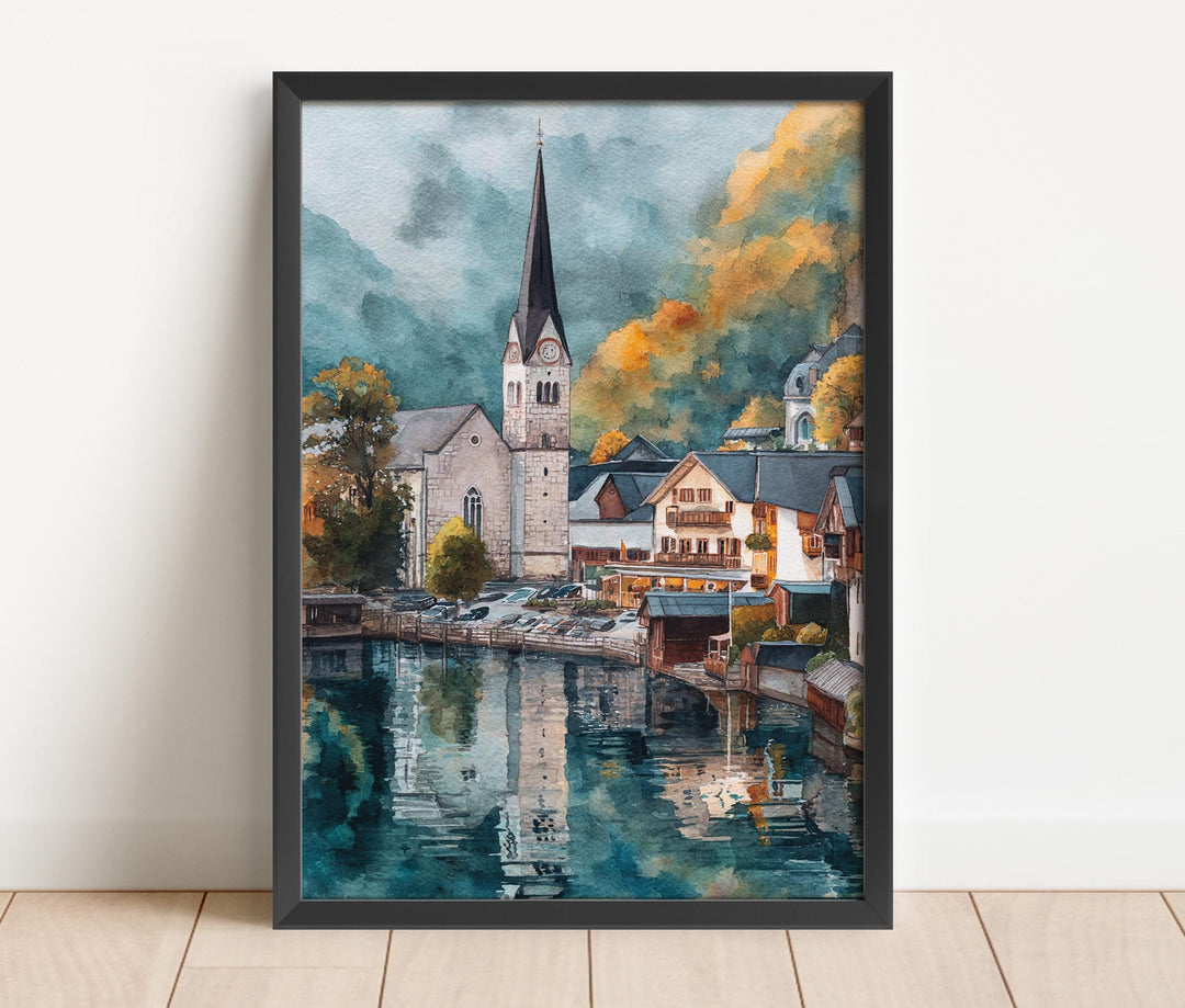 Hallstatt Austria Watercolor Art Hallstatt Travel Print Hallstatt Artwork Hallstatt Austria Decor Austria Wall Art