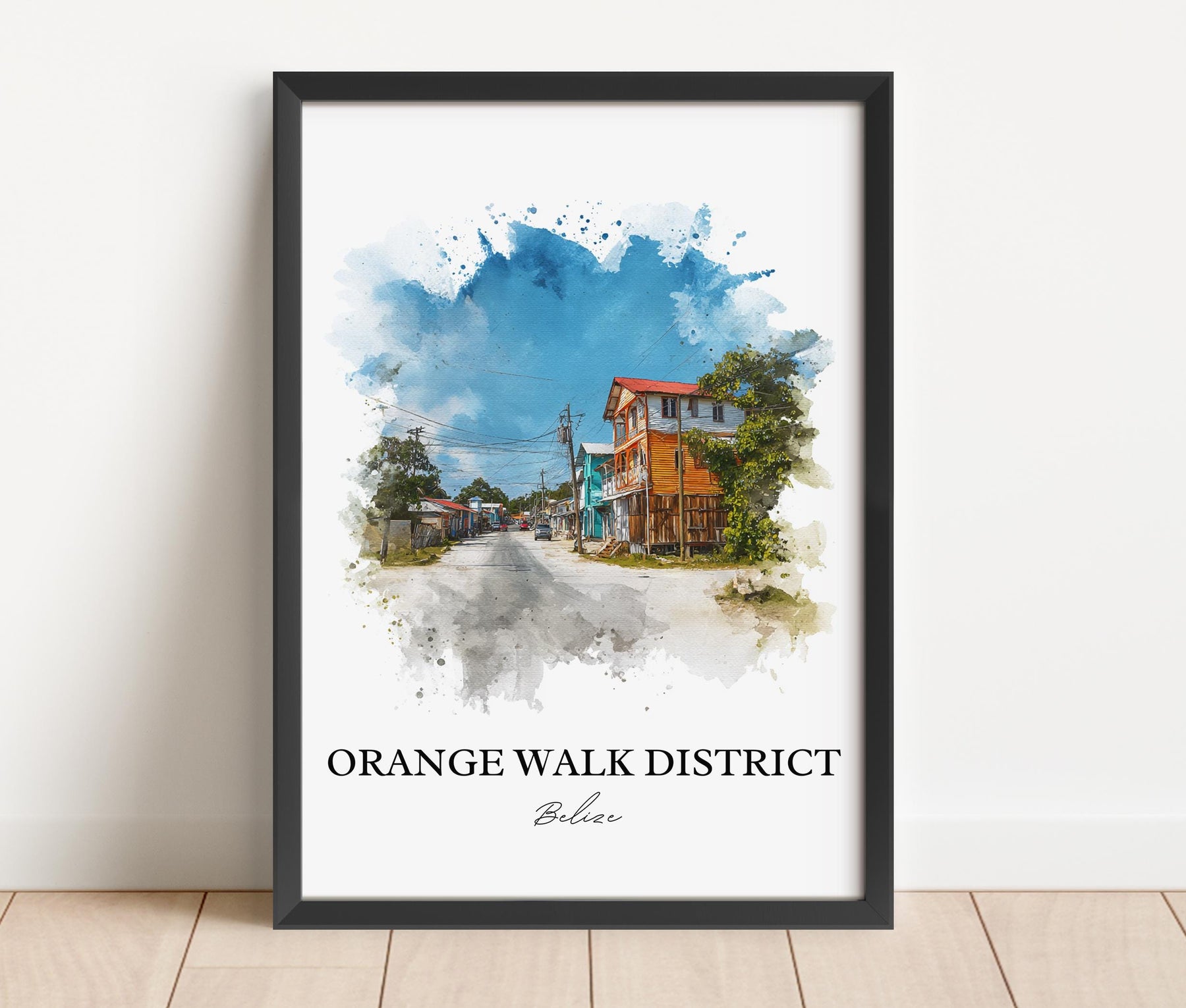 Orange Walk District Art, Belize Print, Belize Watercolor Art, Belize Gift, Belize Travel Print, Travel Poster, Housewarming Gift