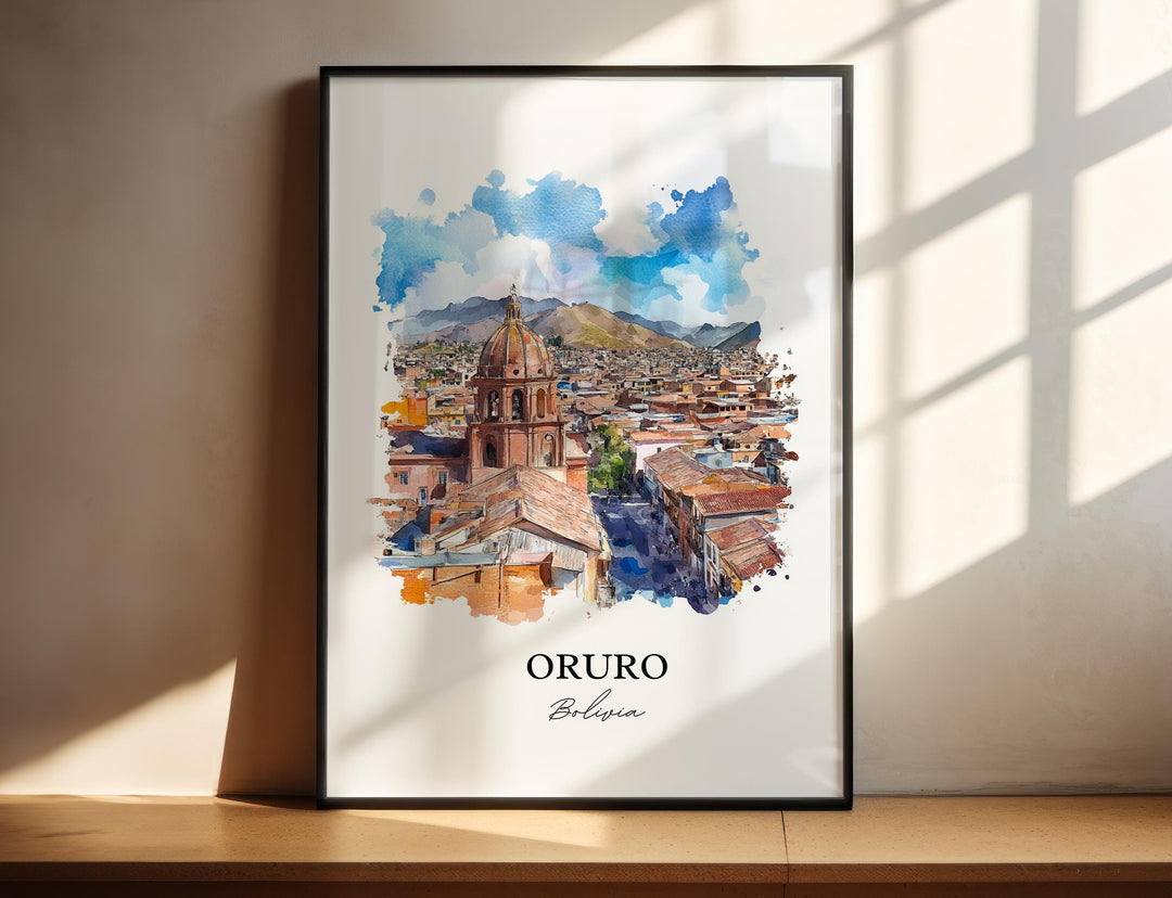 Oruro Wall Art, Oruro Print, Bolivia Watercolor Art, Oruro Bolivia Gift, Travel Print, Travel Poster, Housewarming Gift