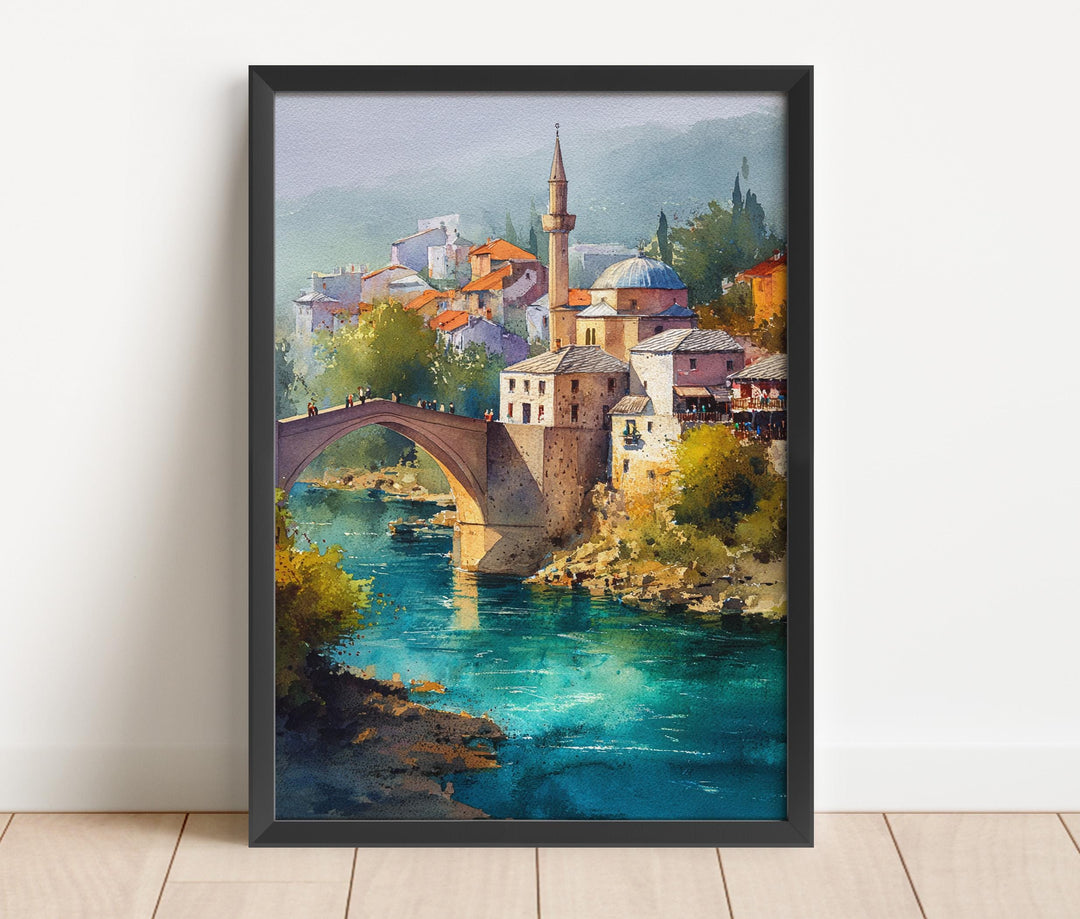 Mostar Watercolor Art Bosnia and Herzegovina Travel Print Bosnia Artwork Bosnia Decor Mostar Wall Art