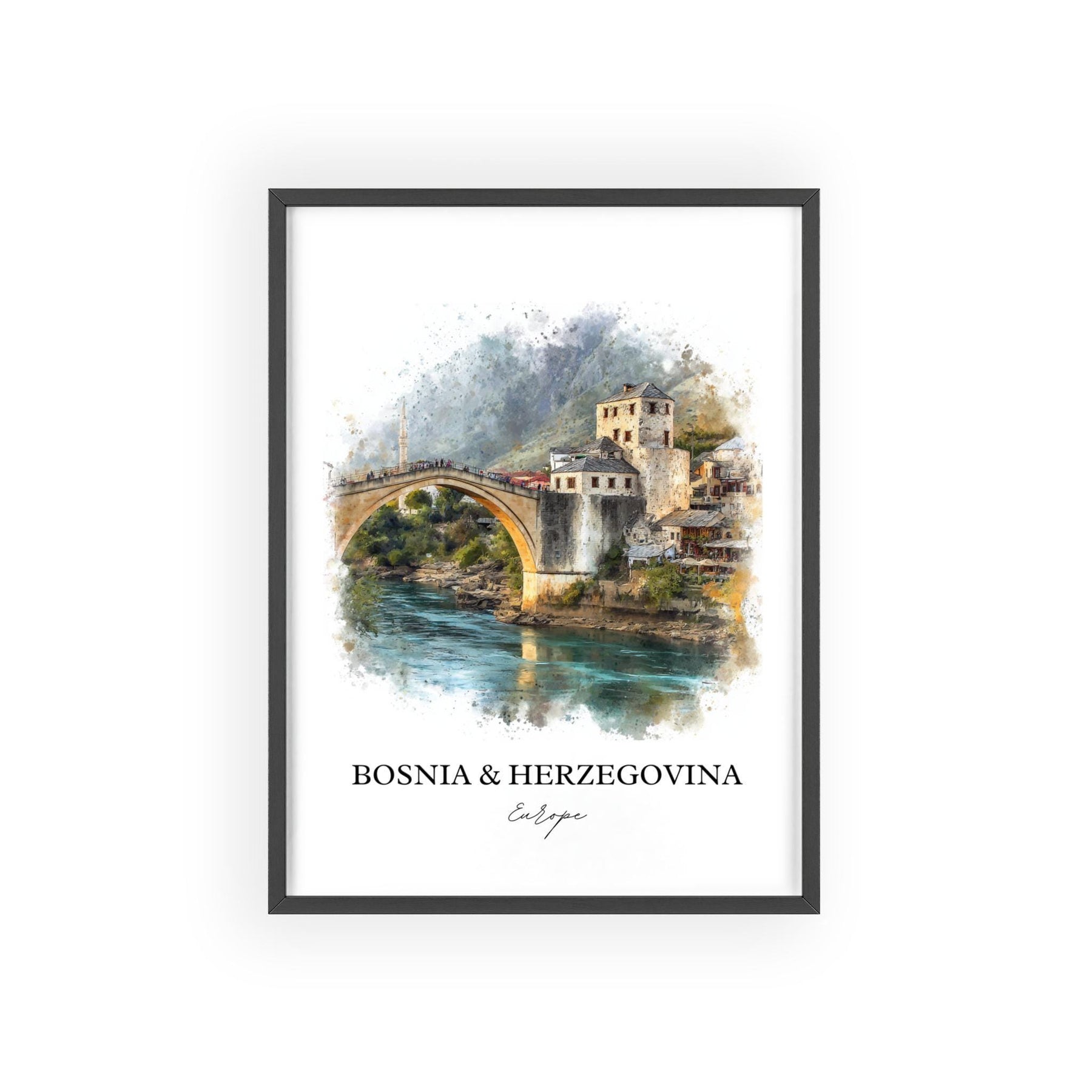 Bosnia + Herzegovina Wall Art, Bosnia Print, Europe Artwork, Bosnia + Herzegovina Gift, Travel Print, Travel Poster, Housewarming Gift