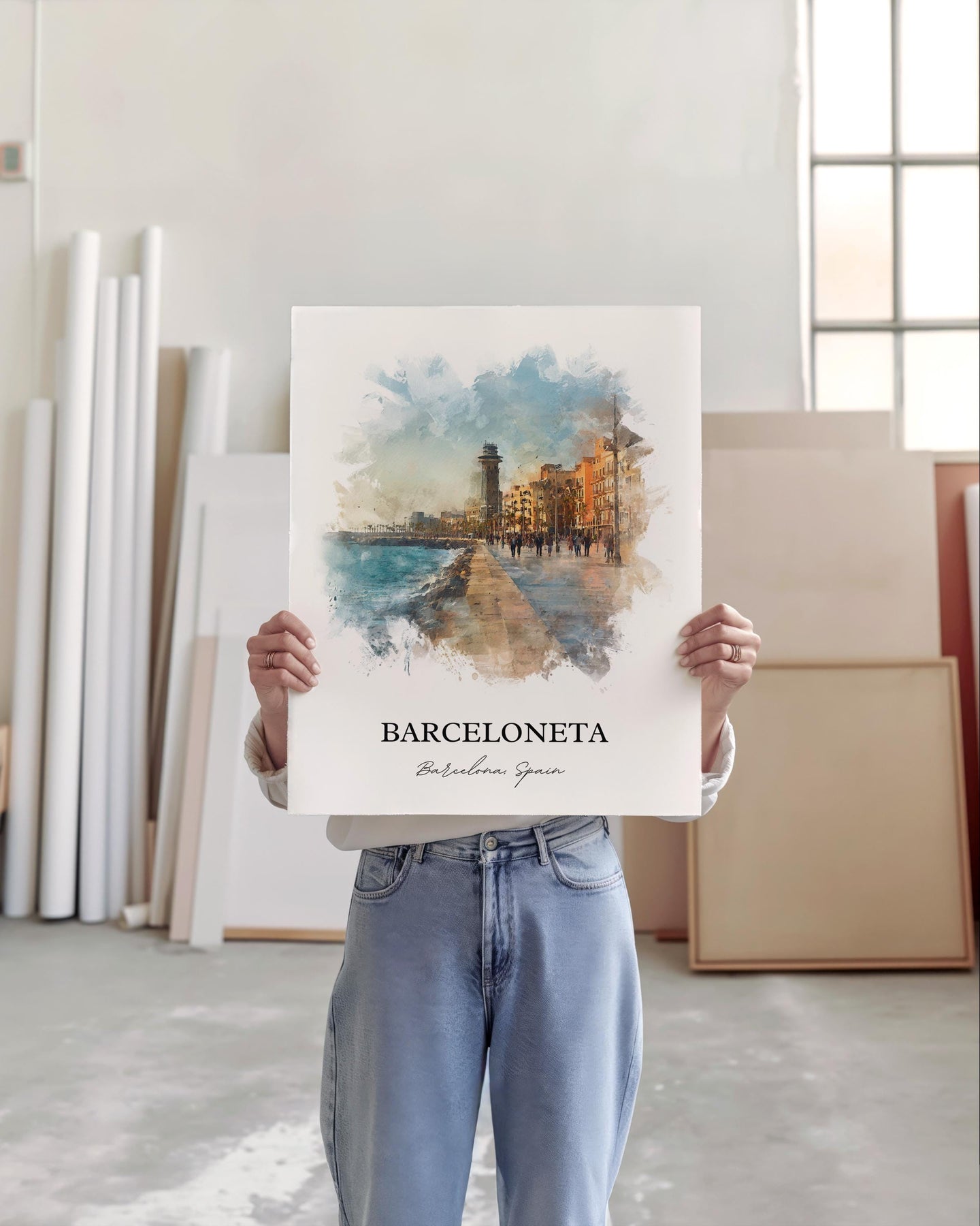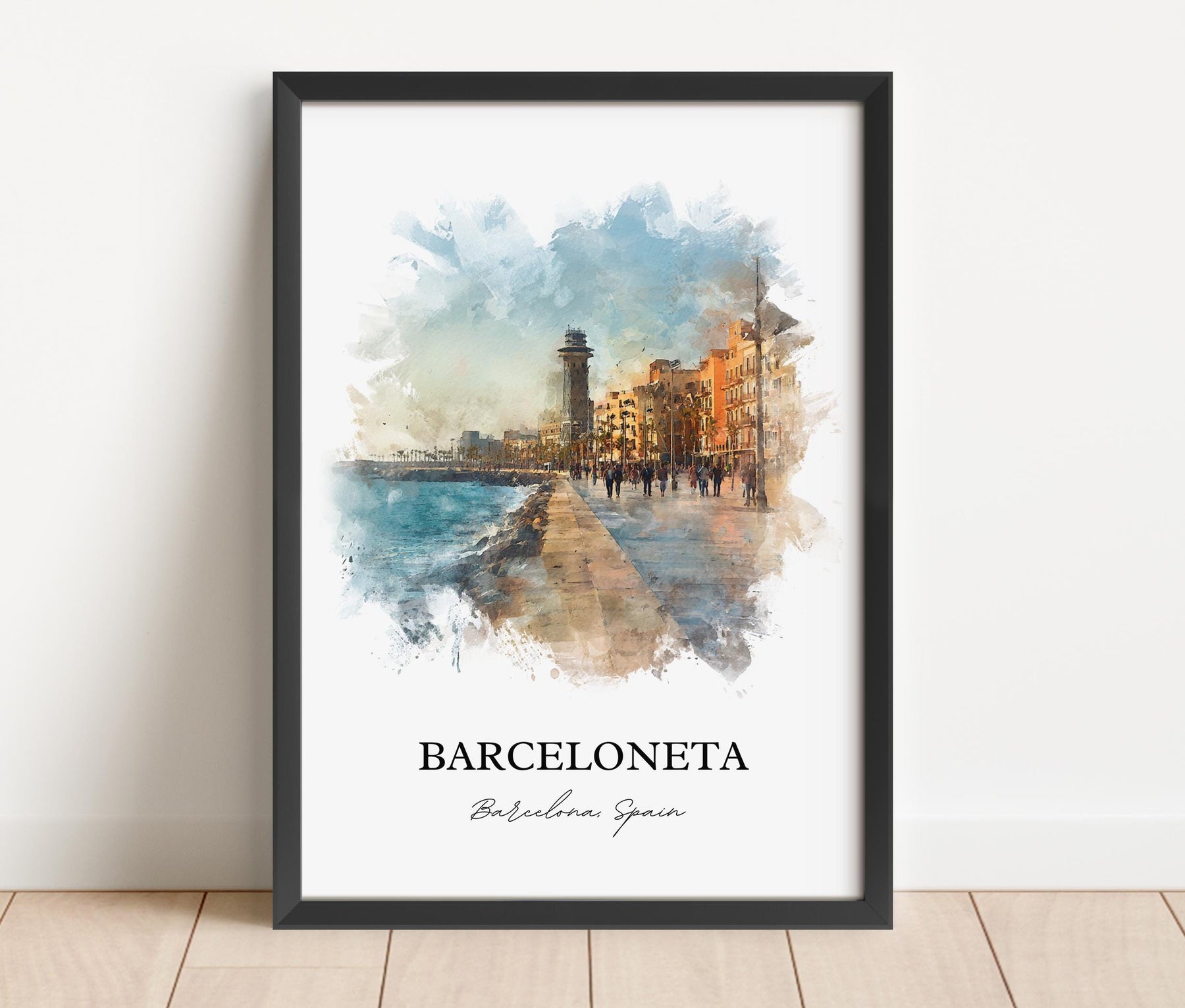 Barceloneta Wall Art, Barceloneta Print, Spain Watercolor, Barcelona Spain Gift, Barcelona Travel Print, Barcelona Travel Poster, Spain Gift