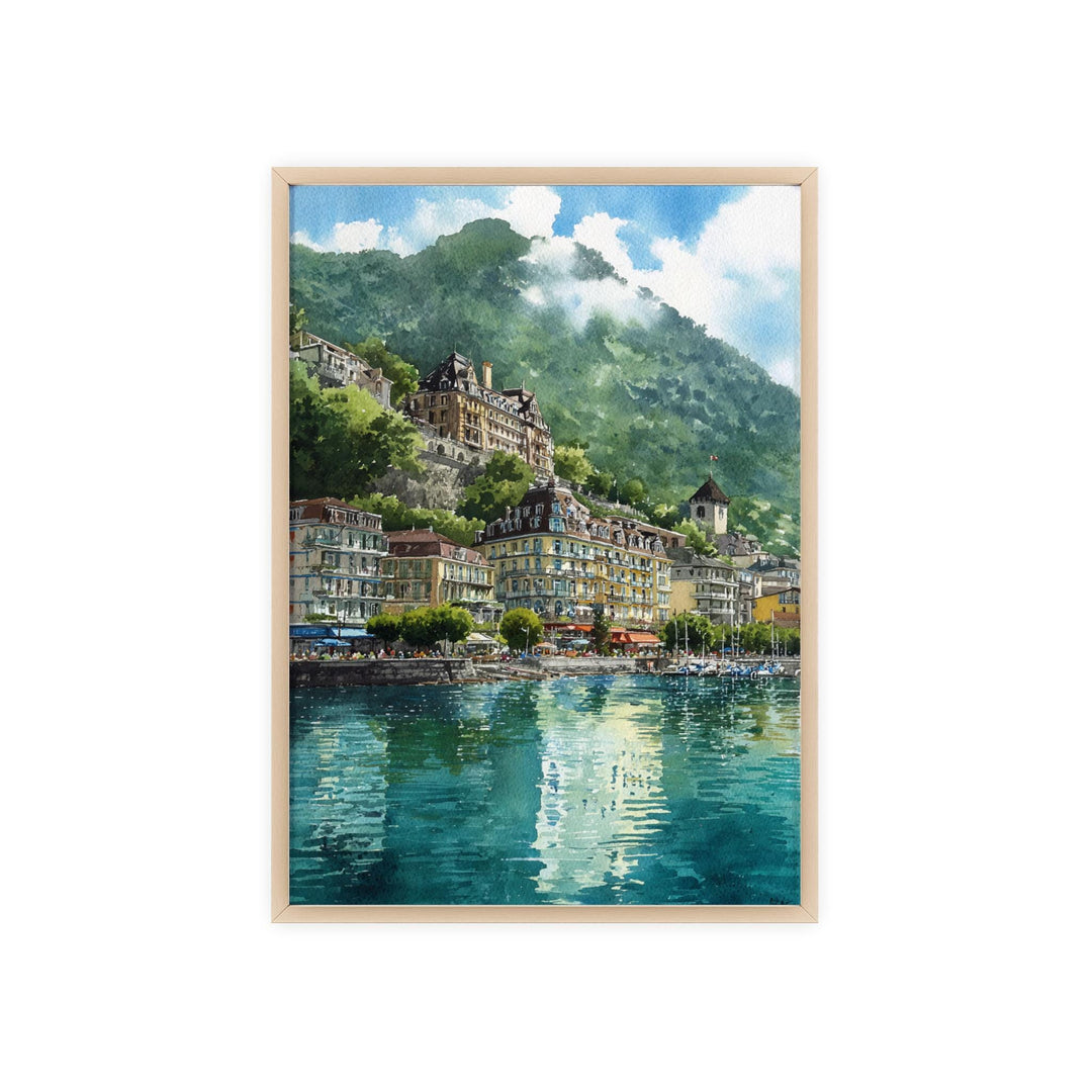 Montreux Watercolor Art Montreux Travel Print Switzerland Artwork Montreux Switzerland Decor Montreux Wall Art