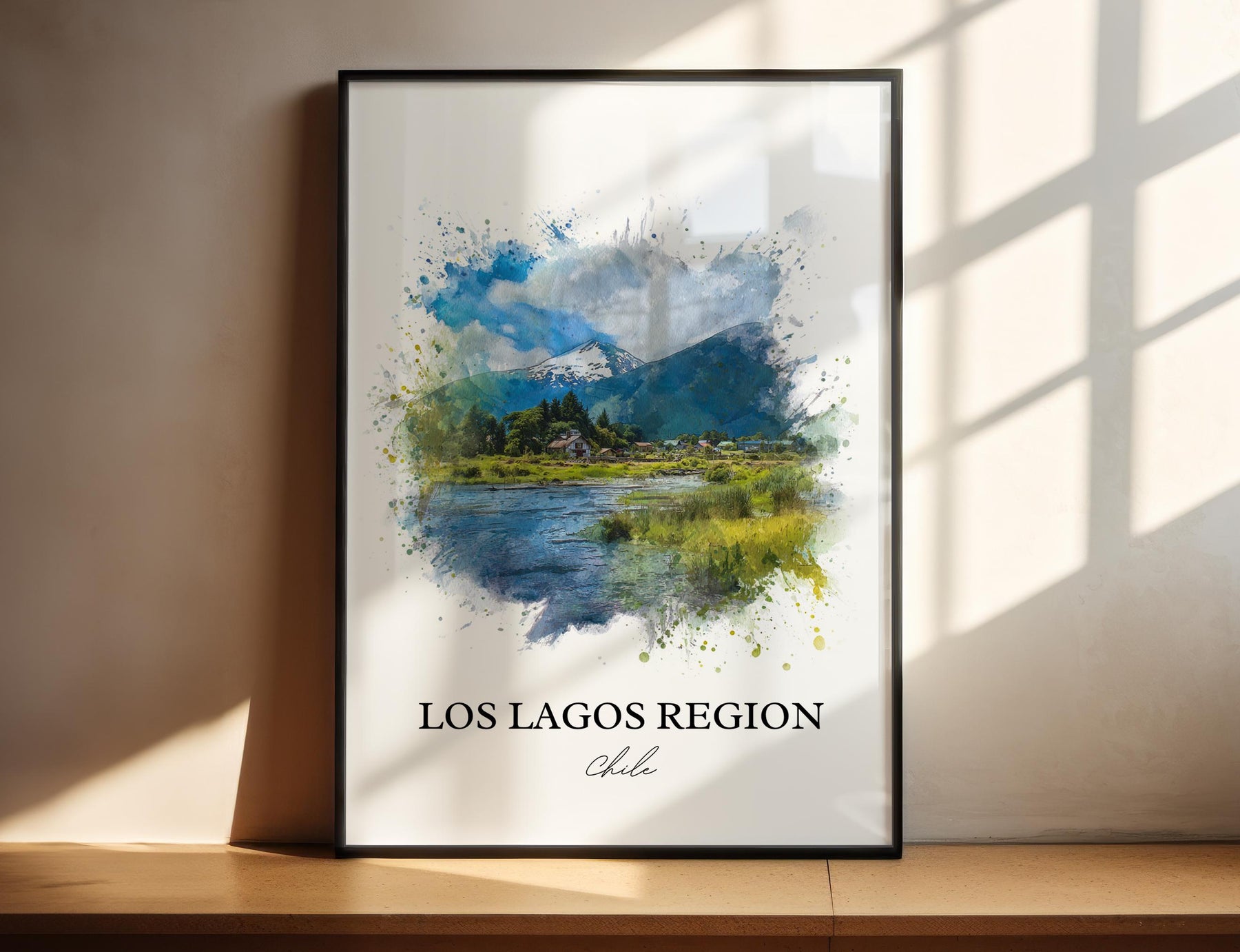 Los Lagos Region Wall Art, Los Lagos Print, Los Lagos Watercolor Art, Los Lagos Chile Gift, Travel Print, Travel Poster, Housewarming Gift