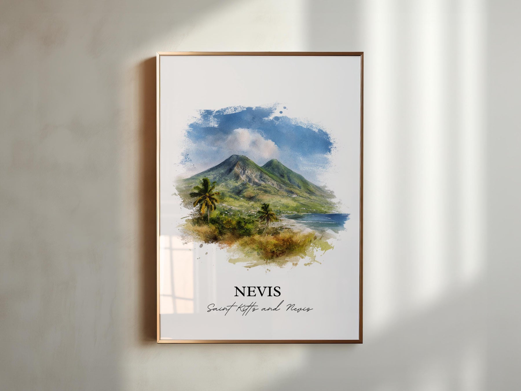 Nevis Wall Art, Nevis Print, St Kitts and Nevis Watercolor Art, Caribbean Gift, Caribbean Travel Print, Travel Poster, Housewarming Gift