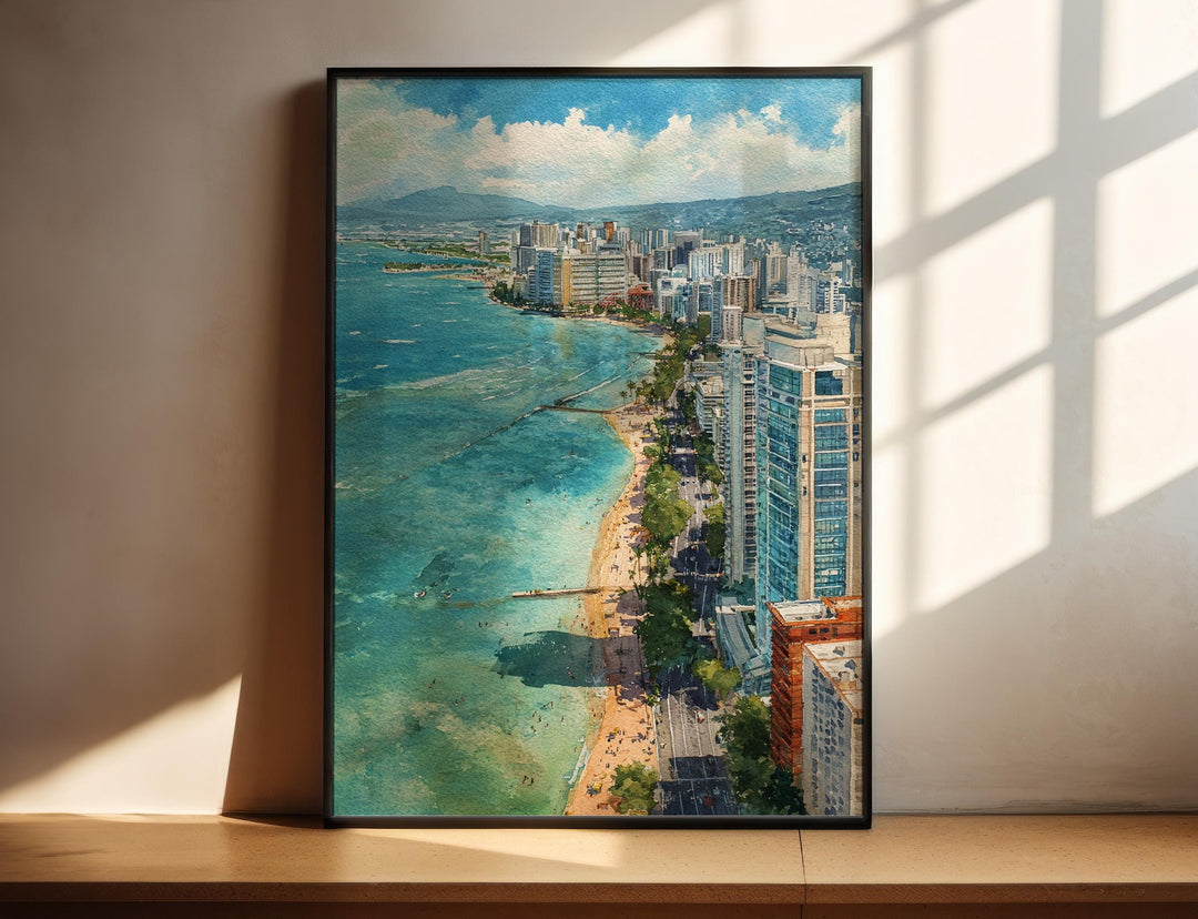 Honolulu Watercolor Art Honolulu Travel Print Honolulu Hawaii Artwork Honolulu Beach Decor Honolulu Skyline Wall Art