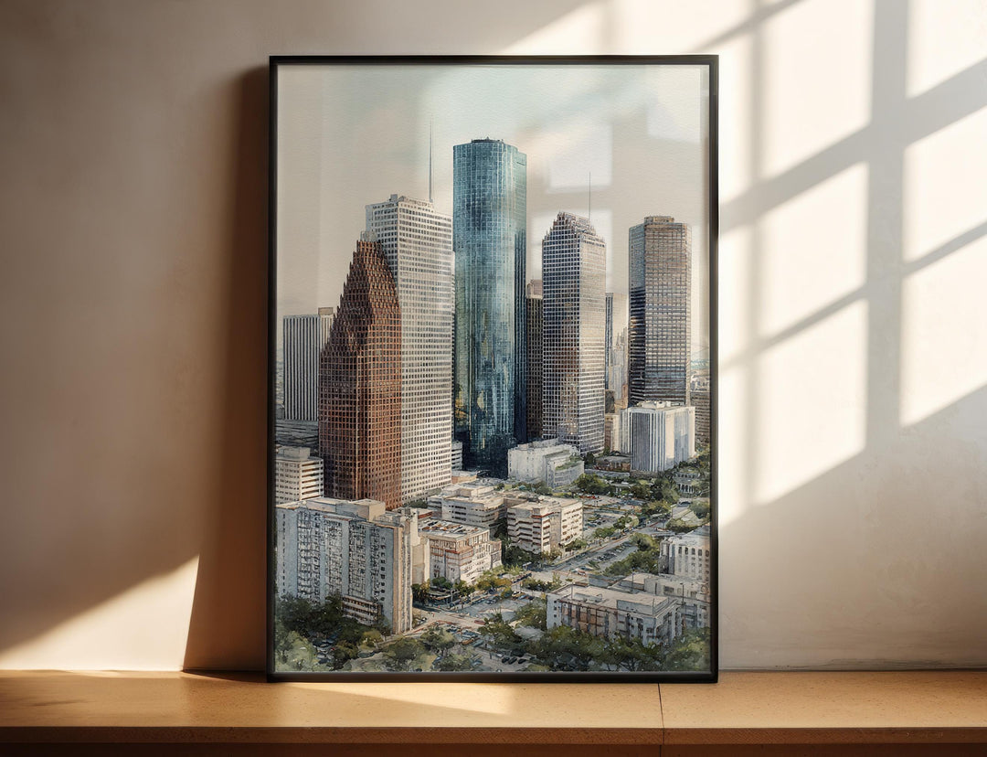 Houston TX Wall Art, Houston Print, Houston Watercolor Art, Houston Skyline Gift, Travel Print, Travel Poster, Housewarming Gift
