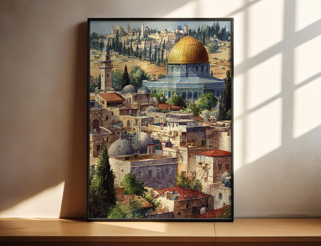 Jerusalem Wall Art, Jerusalem Israel Print, Israel Watercolor Art, Jerusalem Gift, Travel Print, Travel Poster, Housewarming Gift