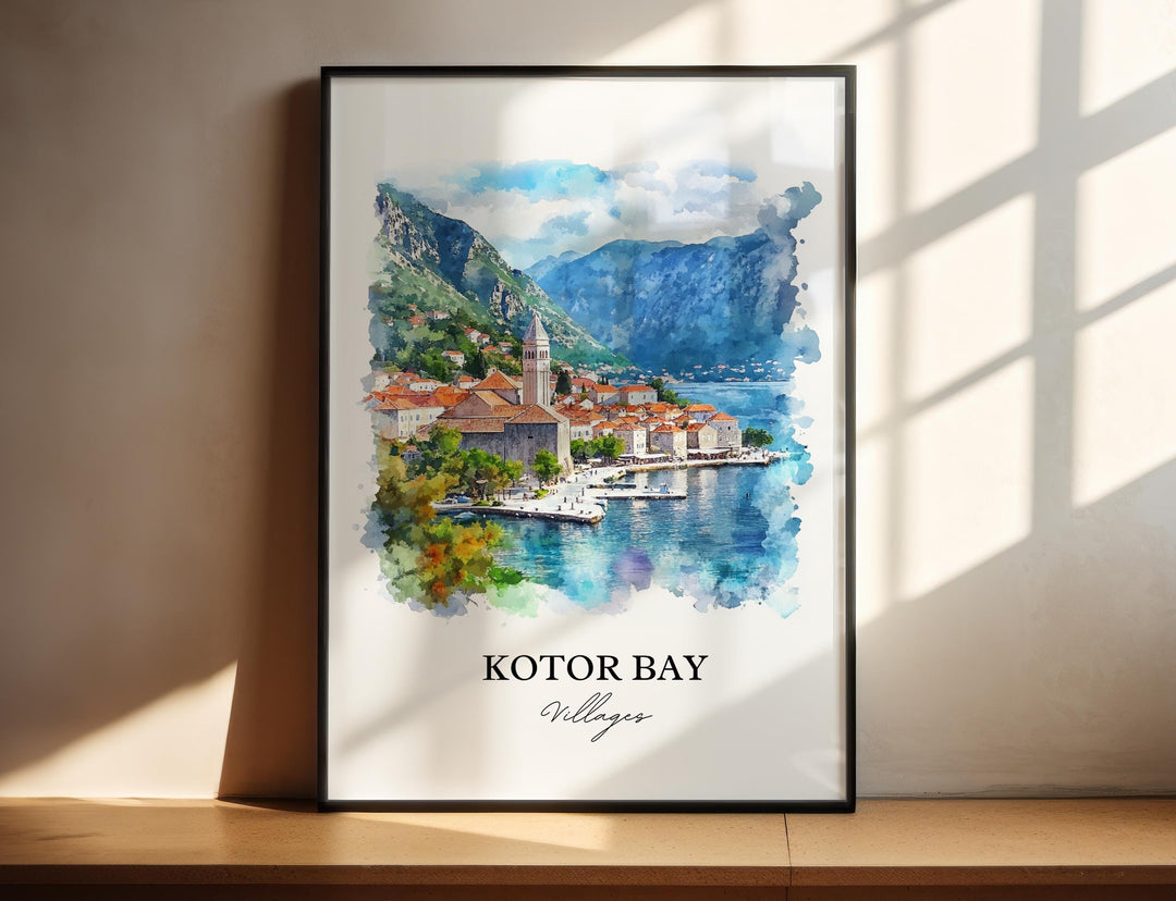 Kotor Bay Wall Art, Montenegro Print, Montenegro Watercolor Art, Kotor Bay Gift, Travel Print, Travel Poster, Housewarming Gift