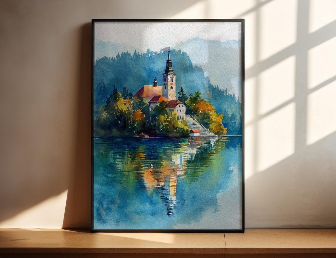 Lake Bled Watercolor Art Lake Bled Travel Print Slovenia Artwork Lake Bled Decor Lake Bled Slovenia Wall Art