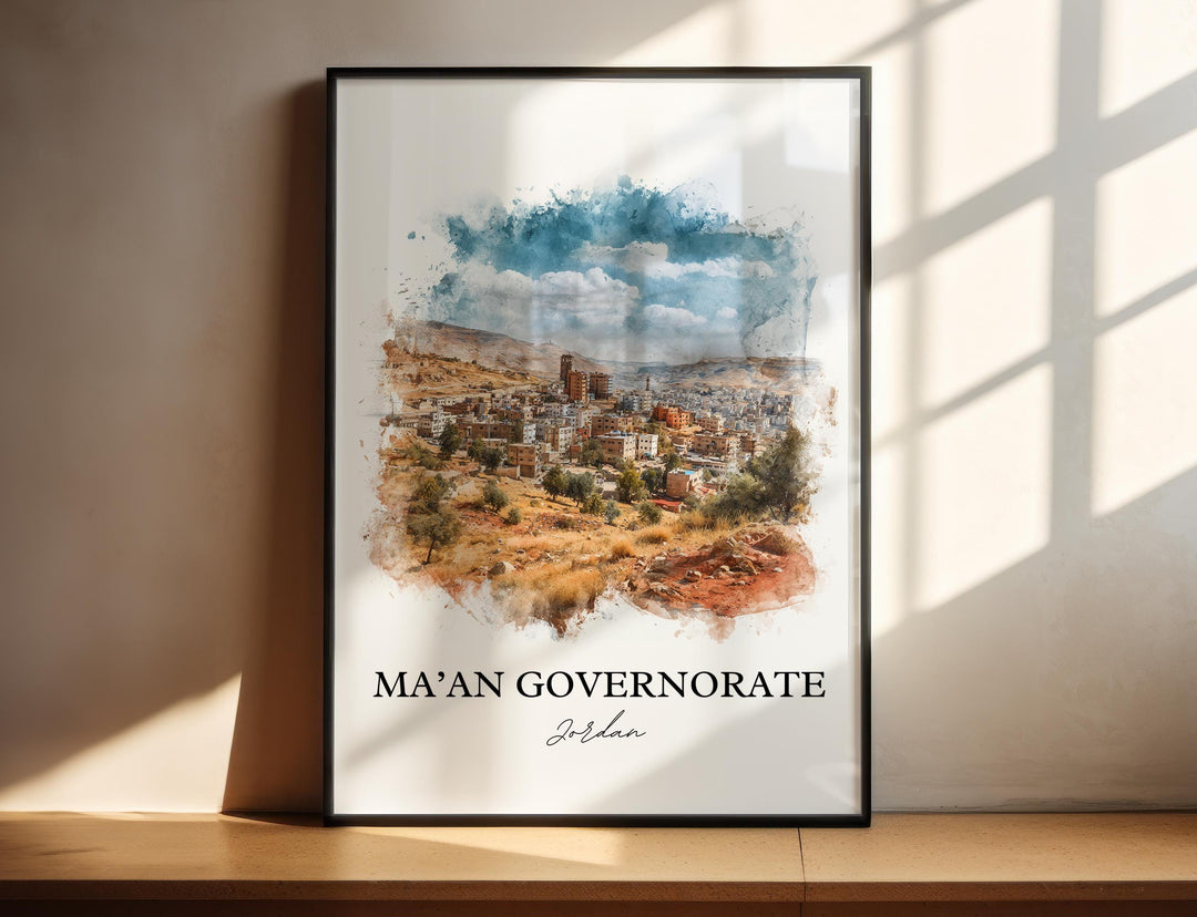 Ma'an Governorate Wall Art, Jordan Print, Jordan Watercolor Art, Ma'an Jordan Gift, Jordan Travel Print, Travel Poster, Housewarming Gift