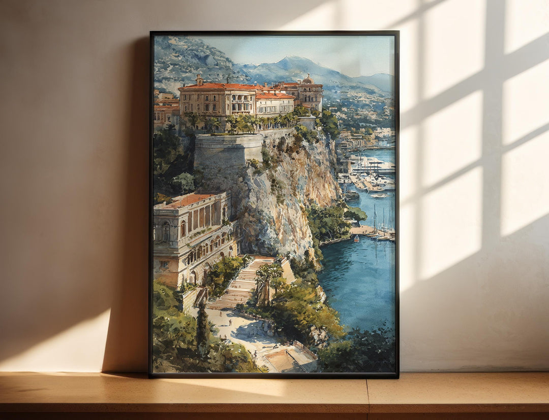 Monaco Wall Art, Monaco Print, Monaco Watercolor Art, Monaco Europe Gift, Travel Print, Travel Poster, Housewarming Gift