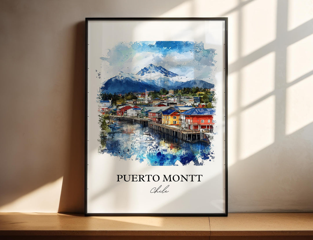 Puerto Montt Wall Art, Southern Chile Print, Chile Watercolor Art, Puerto Montt Gift, Travel Print, Travel Poster, Housewarming Gift