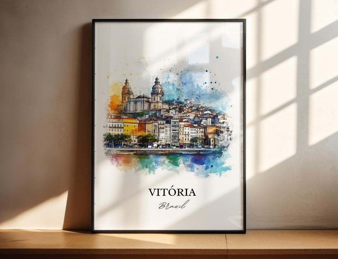 Vitória Brazil Wall Art, Espírito Santo Print, Brazil Watercolor Art, Vitória Brazil Gift, Travel Print, Travel Poster, Housewarming Gift