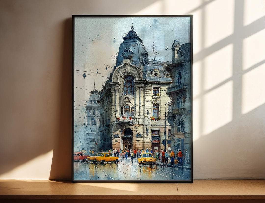 Bucharest Wall Art, Bucharest Print, Romania Watercolor Art, Bucharest Romania Gift, Travel Print, Travel Poster, Housewarming Gift