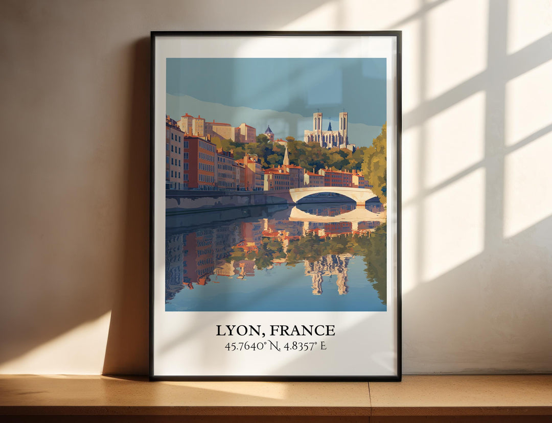 Lyon France Art, Lyon Retro Travel Art, Lyon France Home Decor, France Gift, France Travel Art, Travel Prints, Housewarming Gift