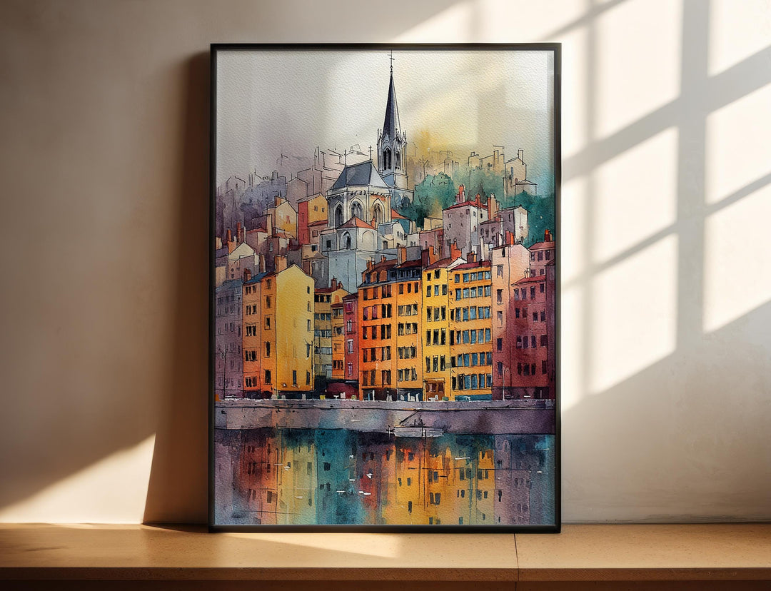 Lyon France Watercolor Art Lyon France Travel Print France Artwork Lyon FR Decor Lyon France Wall Art