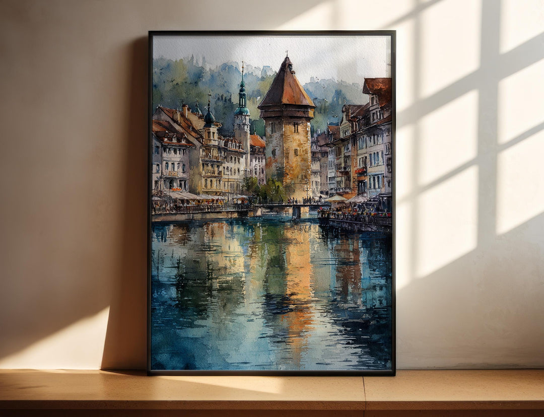 Lucerne Watercolor Art Lucerne Switzerland Travel Print Switzerland Artwork Lucerne Decor Lucerne Cityscape Wall Art