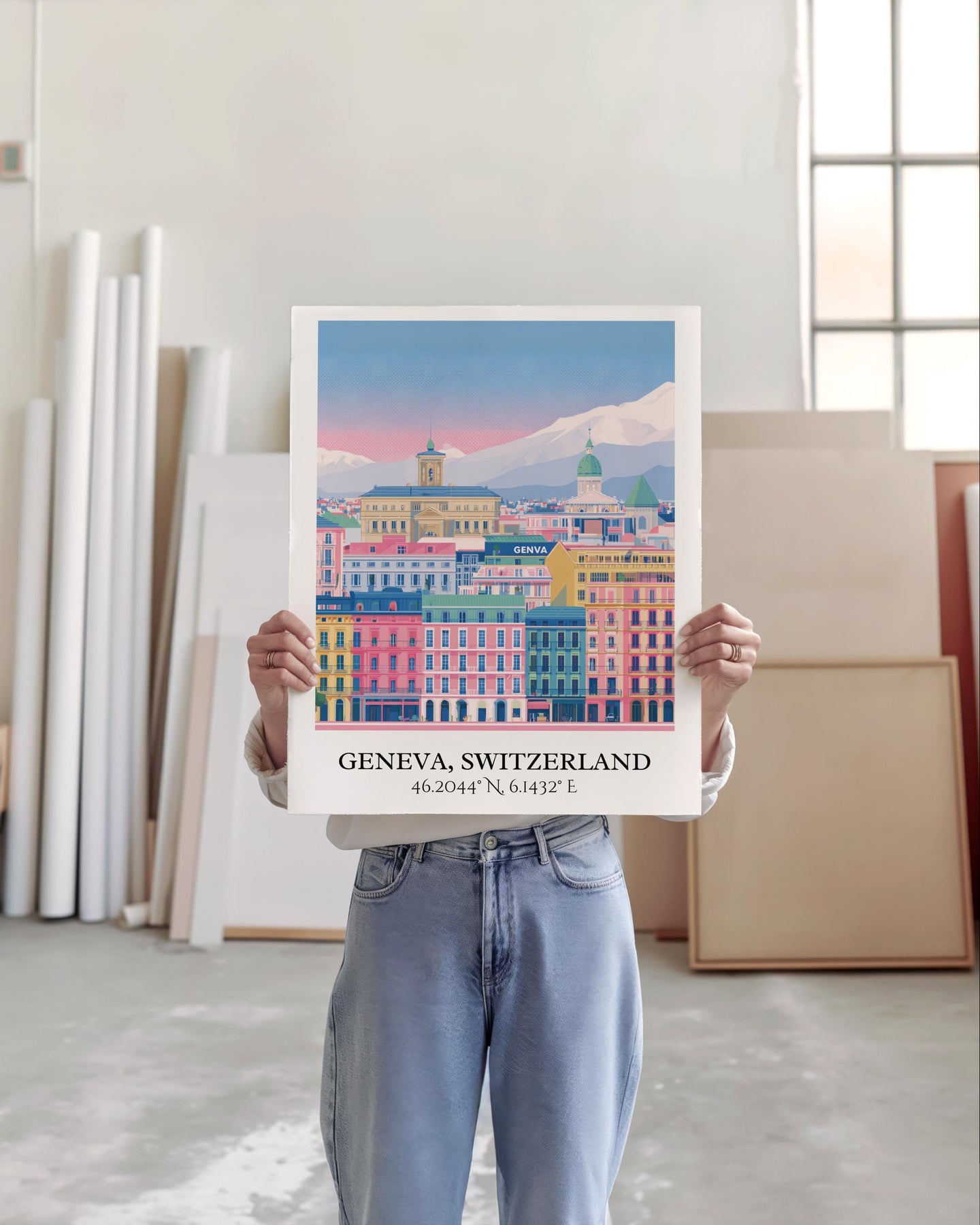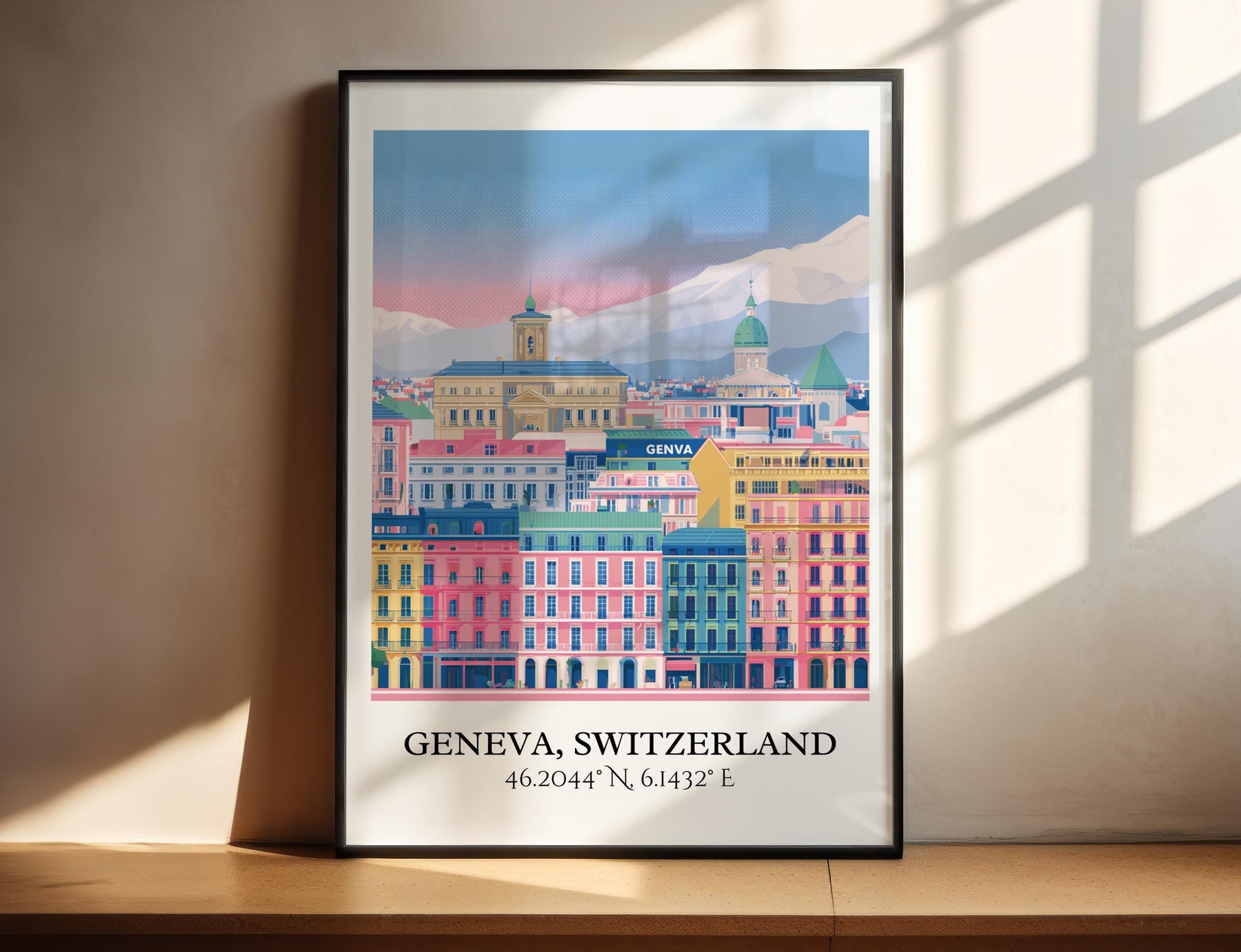 Geneva Switzerland Art, Geneva Retro Travel Art, Geneva Home Decor, Geneva Gift, Switzerland Travel Art, Travel Prints, Housewarming Gift