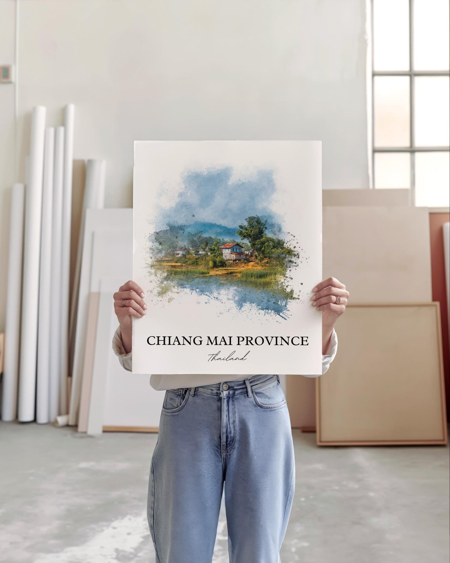 Chiang Mai Wall Art, Chiang Mai Province Print, Thailand Watercolor Art, Chiang Mai Gift, Travel Print, Travel Poster, Housewarming Gift