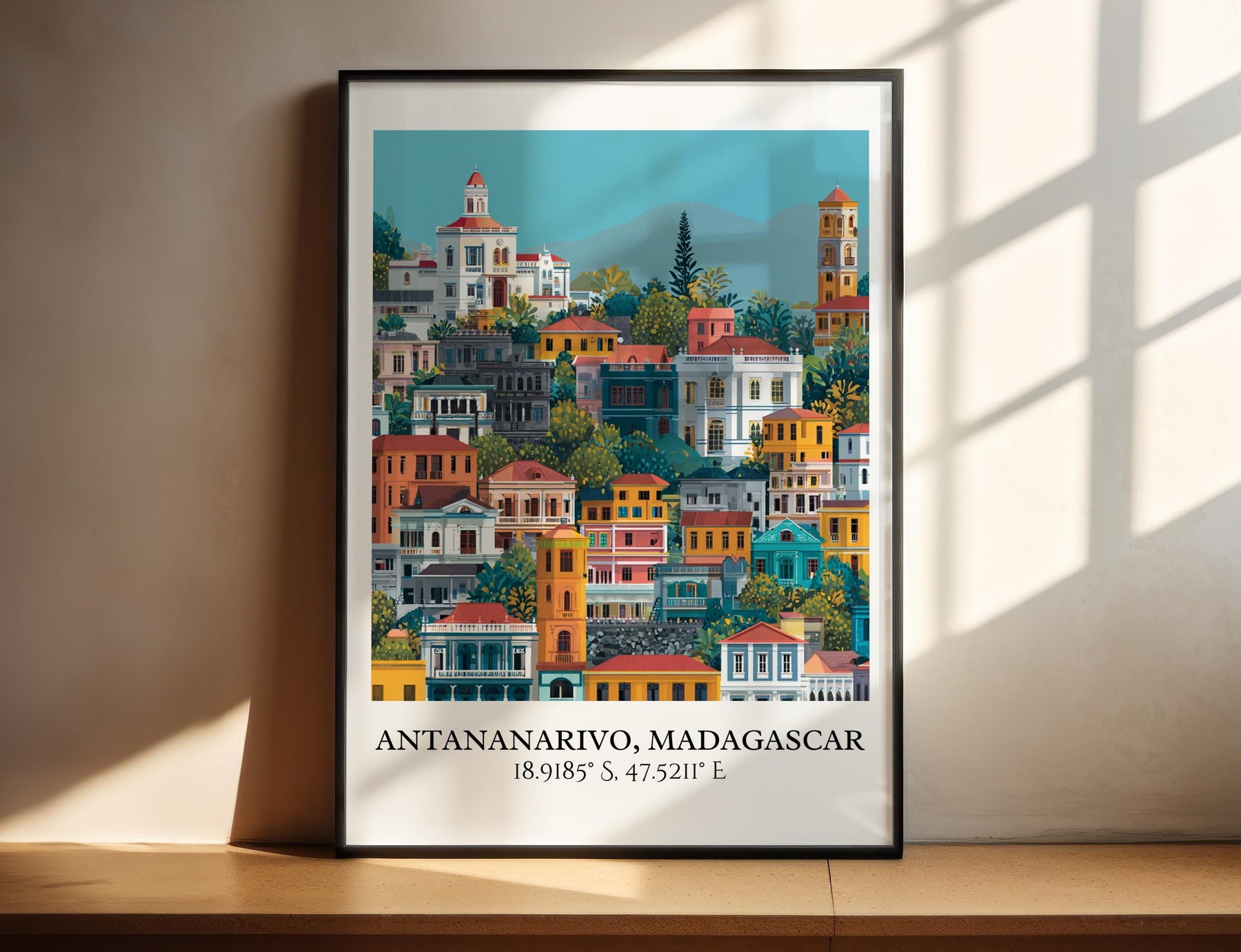 Antananarivo Wall Art, Antananarivo Retro Travel Art, Madagascar Home Decor, Madagascar Travel Art, Travel Prints, Housewarming Gift