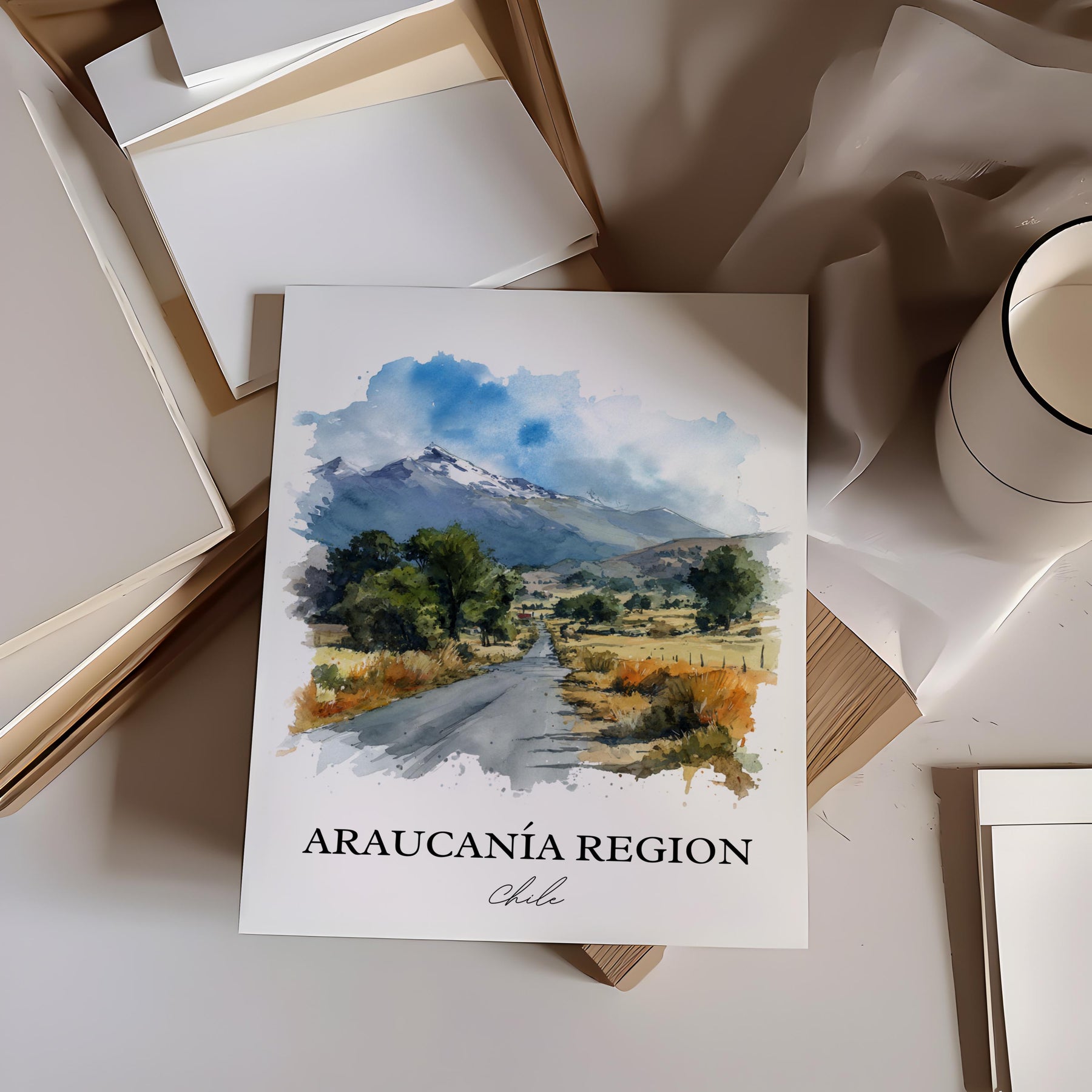 Araucania Region Wall Art, Araucania Chile Print, Chile Watercolor Art, Chile Gift, Chile Travel Print, Travel Poster, Housewarming Gift