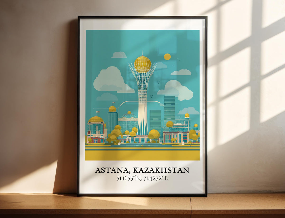 Astana Art, Astana Retro Travel Art, Astana Home Decor, Kazakhstan Gift, Kazakhstan Travel Art, Travel Prints, Housewarming Gift