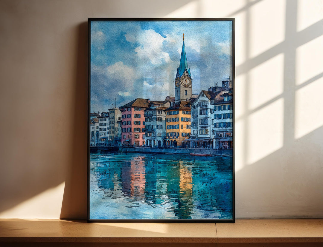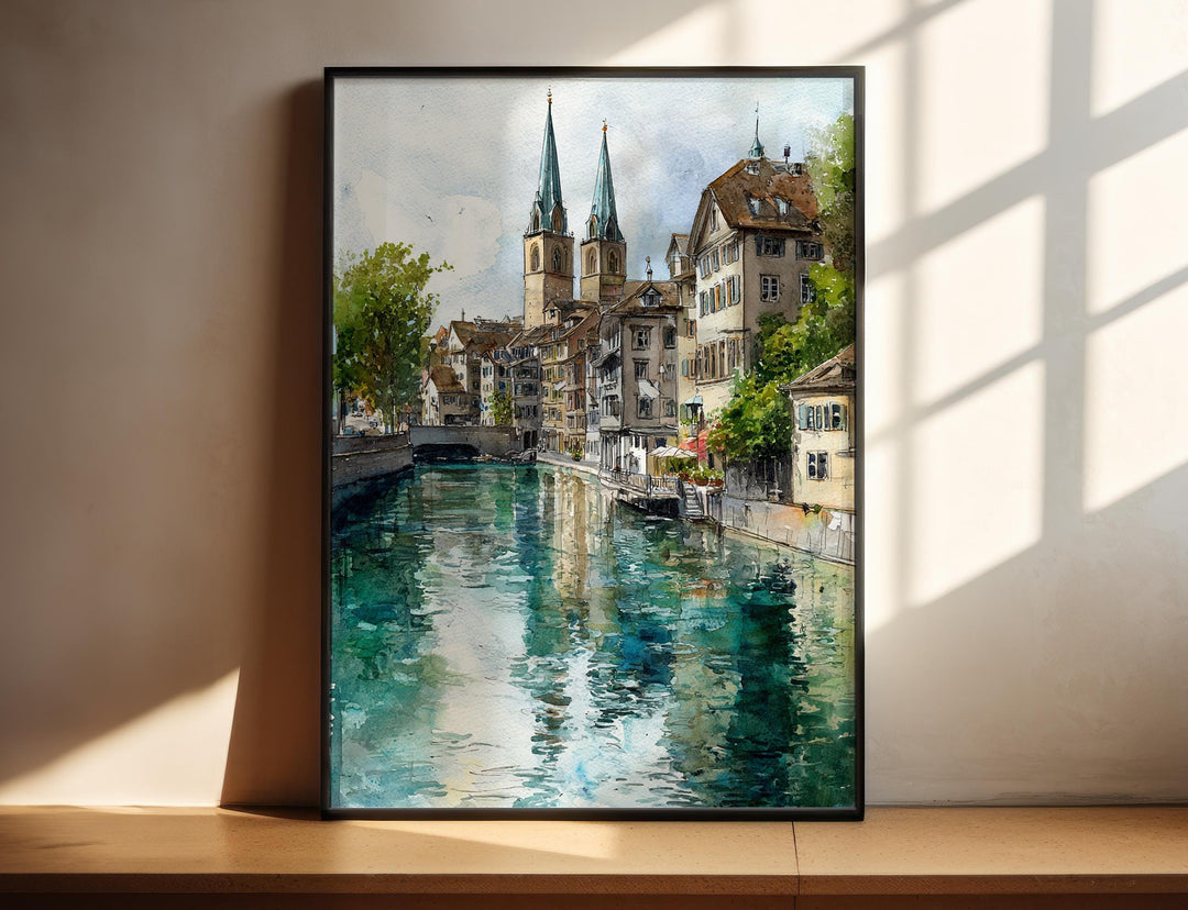 Zurich Watercolor Art, Switzerland Print, Zurich Wall Art, Swiss Art Gift, Travel Print, Travel Poster, Travel Gift, Housewarming Gift