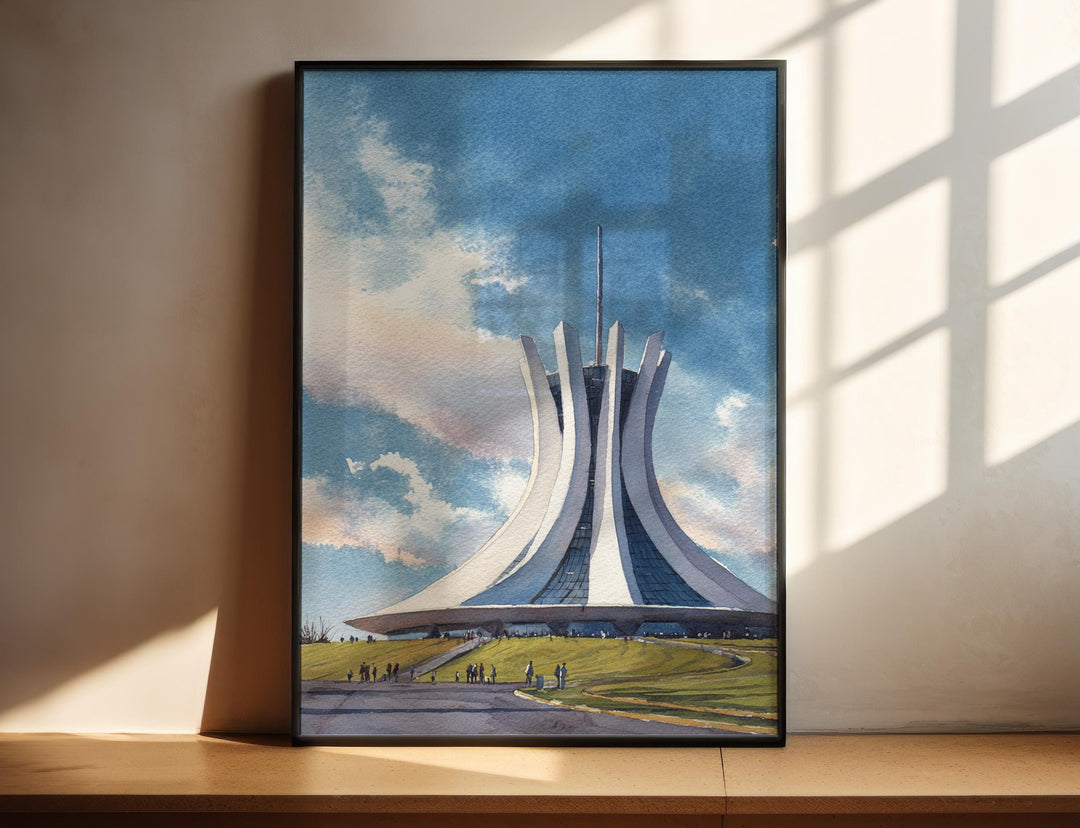 Cathedral of Brasilia travel art - Brazil, Cathedral de Brasilia poster print, Wedding gift, Birthday present, Custom Text, Perfect Gift
