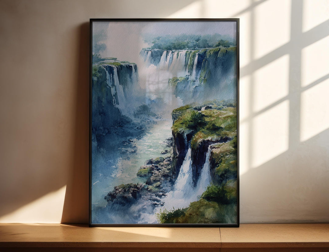 Iguazu Falls Watercolor Art Paraná Travel Print Paraná Brazil Artwork Brazil Decor Iguazu Falls Wall Art