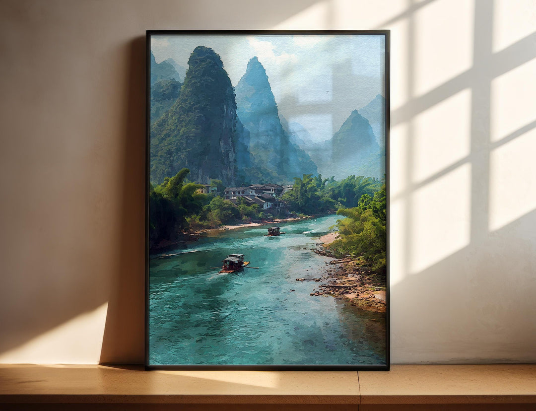Yangshuo Watercolor Art Guilin Travel Print Guilin China Artwork China Decor Guangxi Region Wall Art
