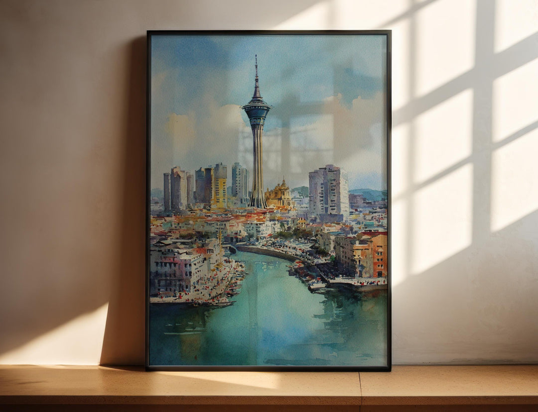 Macao Wall Art, Macao Print, Macao Watercolor Art, Macao China Gift, Travel Print, Travel Poster, Housewarming Gift
