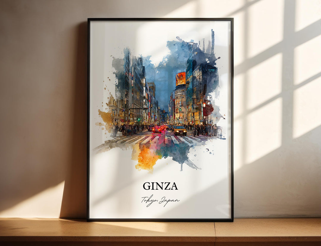 Ginza Tokyo Wall Art, Ginza Print, Ginza Japan Watercolor Art, Ginza Japan Gift, Tokyo Travel Print, Tokyo Travel Poster, Housewarming Gift
