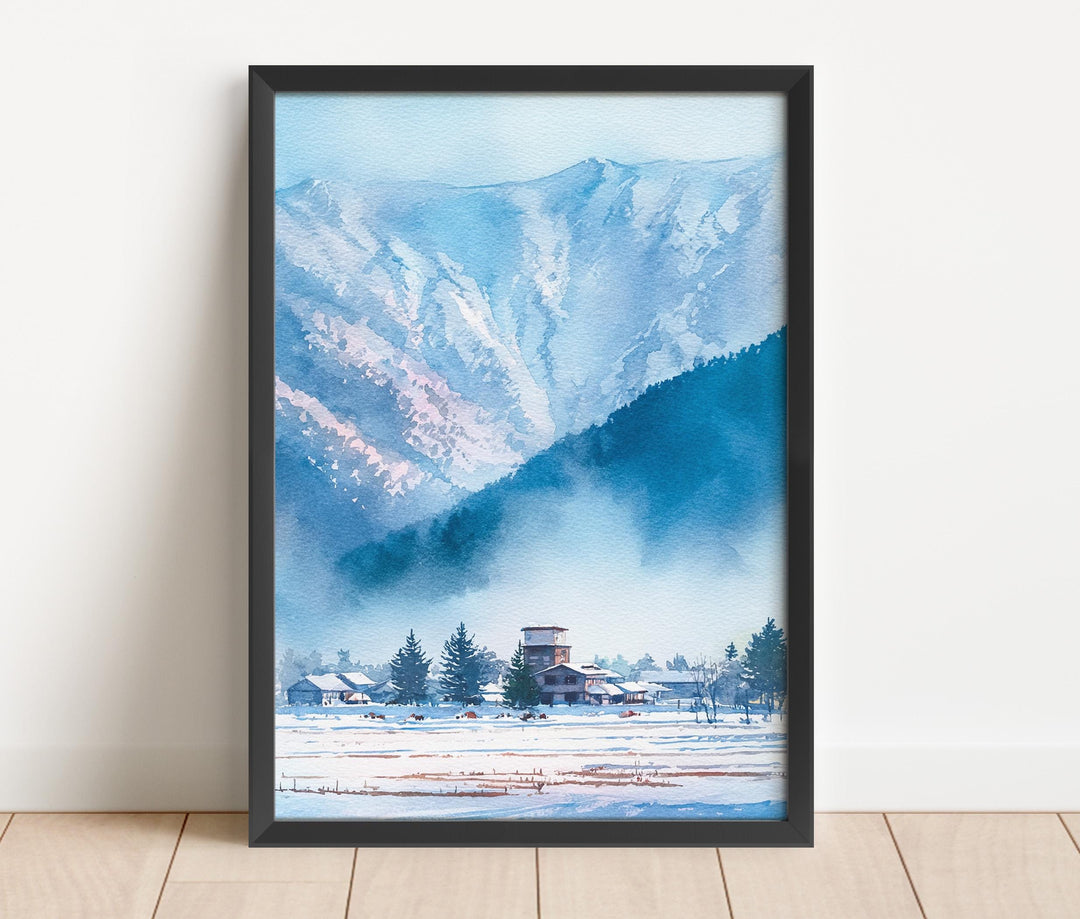Hakuba Valley Watercolor Art Japanese Alps Travel Print Nagano Artwork Nagano Japan Decor Hakuba Valley Wall Art