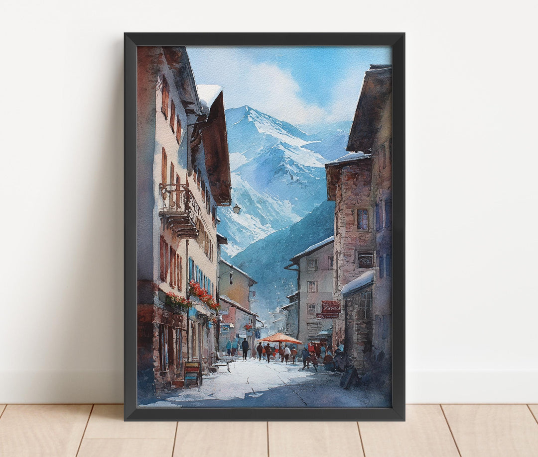 Saas-Fee Watercolor Art Saas-Fee Travel Print Saas-Fee Switzerland Artwork Swiss Alps Decor Switzerland Wall Art