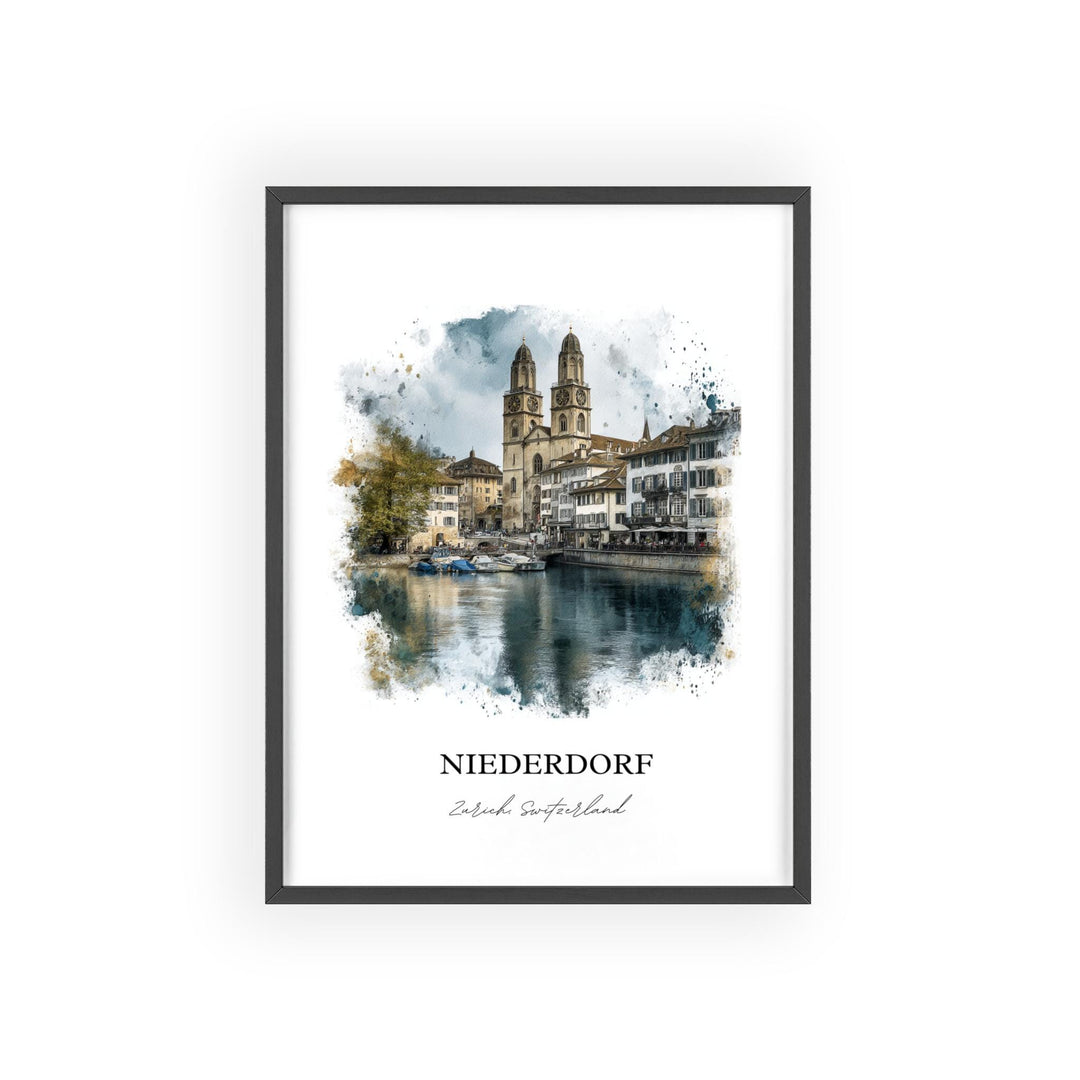 Niederdorf Wall Art, Zurich Print, Zurich Watercolor Art, Zurich Switzerland Gift, Zurich Travel Print, Travel Poster, Housewarming Gift