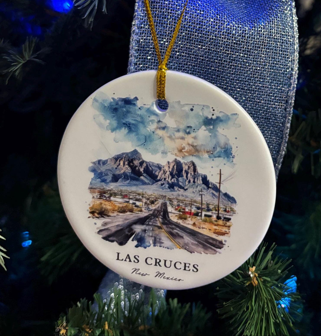 Our ornaments are made with durable ceramic and come with a hole and a gold toned string so you can hang your ornament proudly on your Christmas Tree! Matte finish. One-sided print. Perfect for the travel lovers in your family and 100% personalizable! Diameter of 2.8 inches makes for a perfect ornament size. Merry Christmas!!