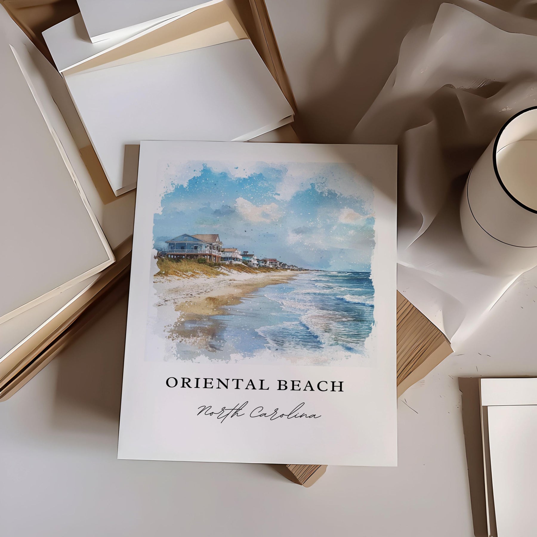 Oriental Beach NC Art, Oriental Beach Print, Pamlico NC Watercolor, John Bond Town Beach,